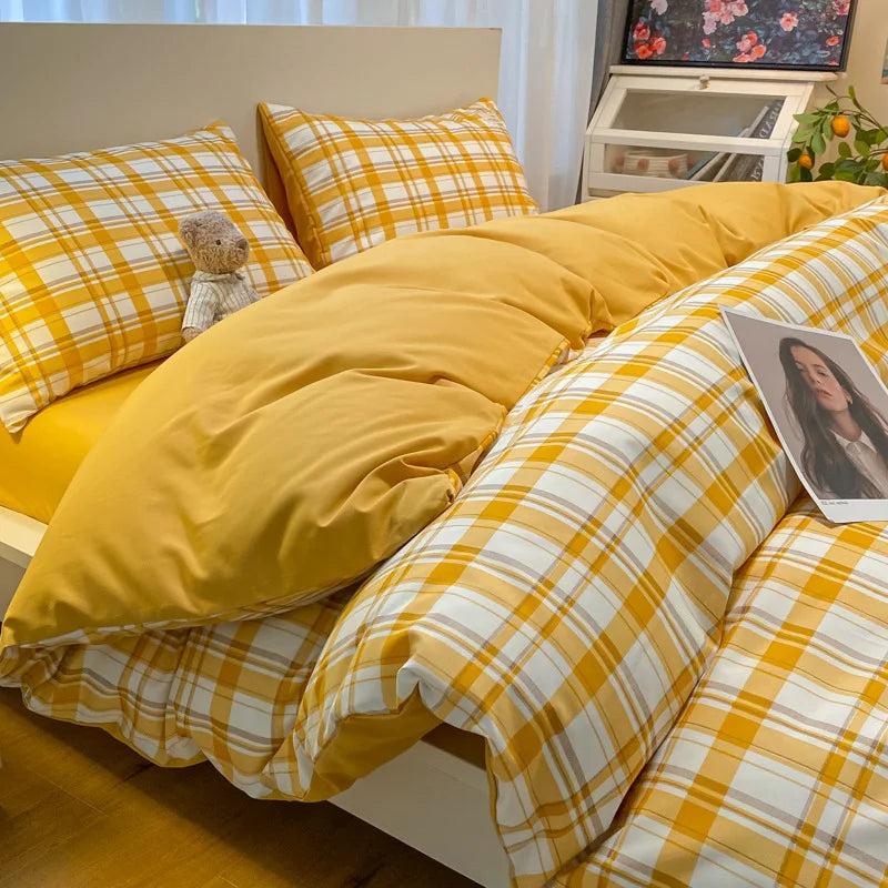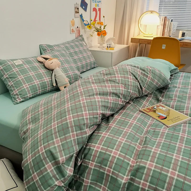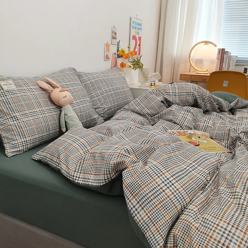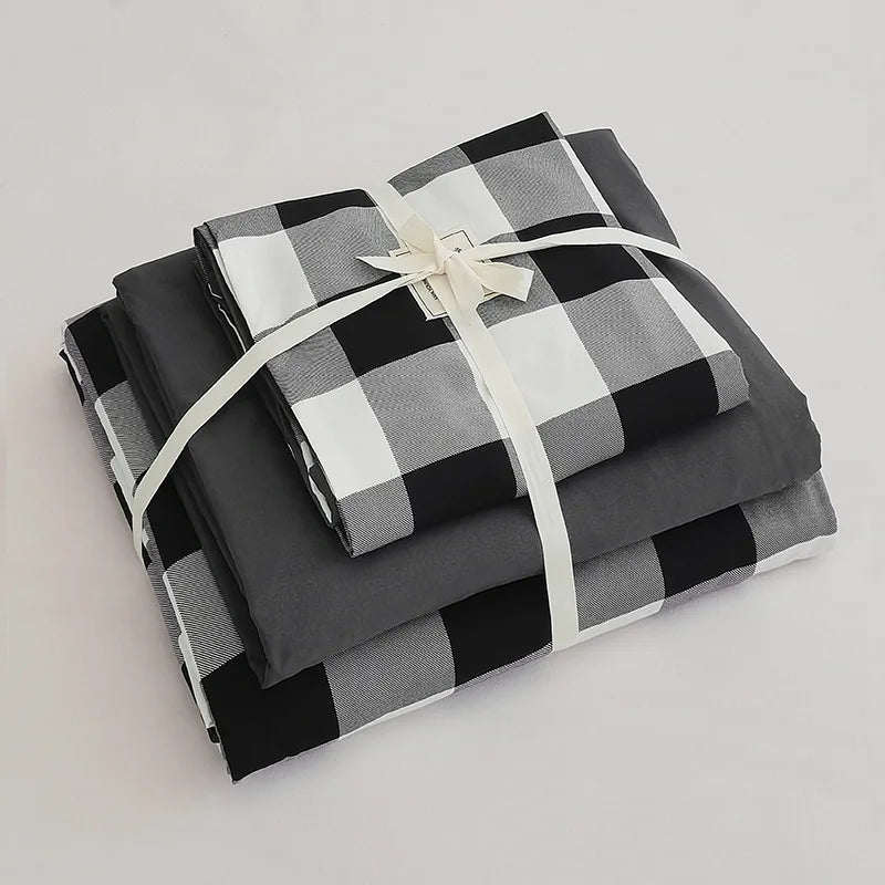 Transform your bedroom with the 3/4-Piece Microfiber Duvet Cover Set, crafted from brushed washed cotton fabric for ultimate comfort and durability. This set includes a plaid quilt cover and a fitted sheet, available in Double, Queen, and King sizes. The soft microfiber material offers a cozy feel, while the stylish plaid design adds a touch of modern elegance to your bedding. Perfect for creating a warm and inviting sleeping space, this set ensures a restful night’s sleep with its high-quality construction.
