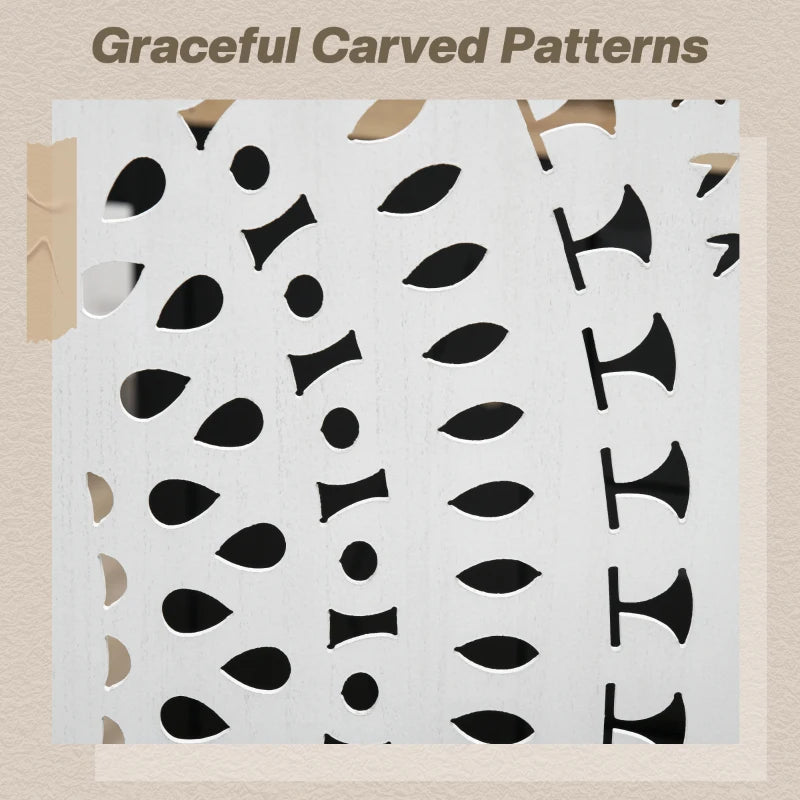 Add elegance and functionality to your space with this beautifully crafted 3-panel room divider. Designed with carved patterns and a solid wood frame, it creates a stylish privacy solution for any room. Its foldable design makes it easy to adjust, reposition, or store when not in use.