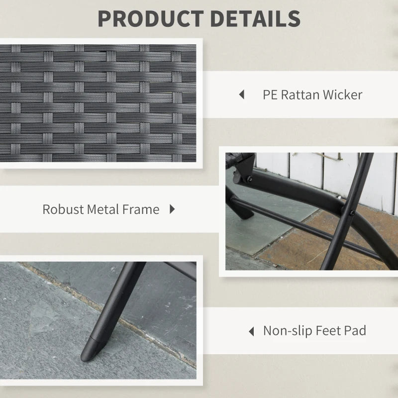 Relax in style with this 3-piece rattan patio set, including two chairs and a matching table. Perfect for indoor or outdoor use, the table holds drinks, books, or snacks within easy reach. Foldable design saves space and makes storage or transport effortless. Crafted from a solid steel frame and weather-resistant PE rattan, this set offers durability, portability, and elegant outdoor charm. Ideal for patios, balconies, or gardens.