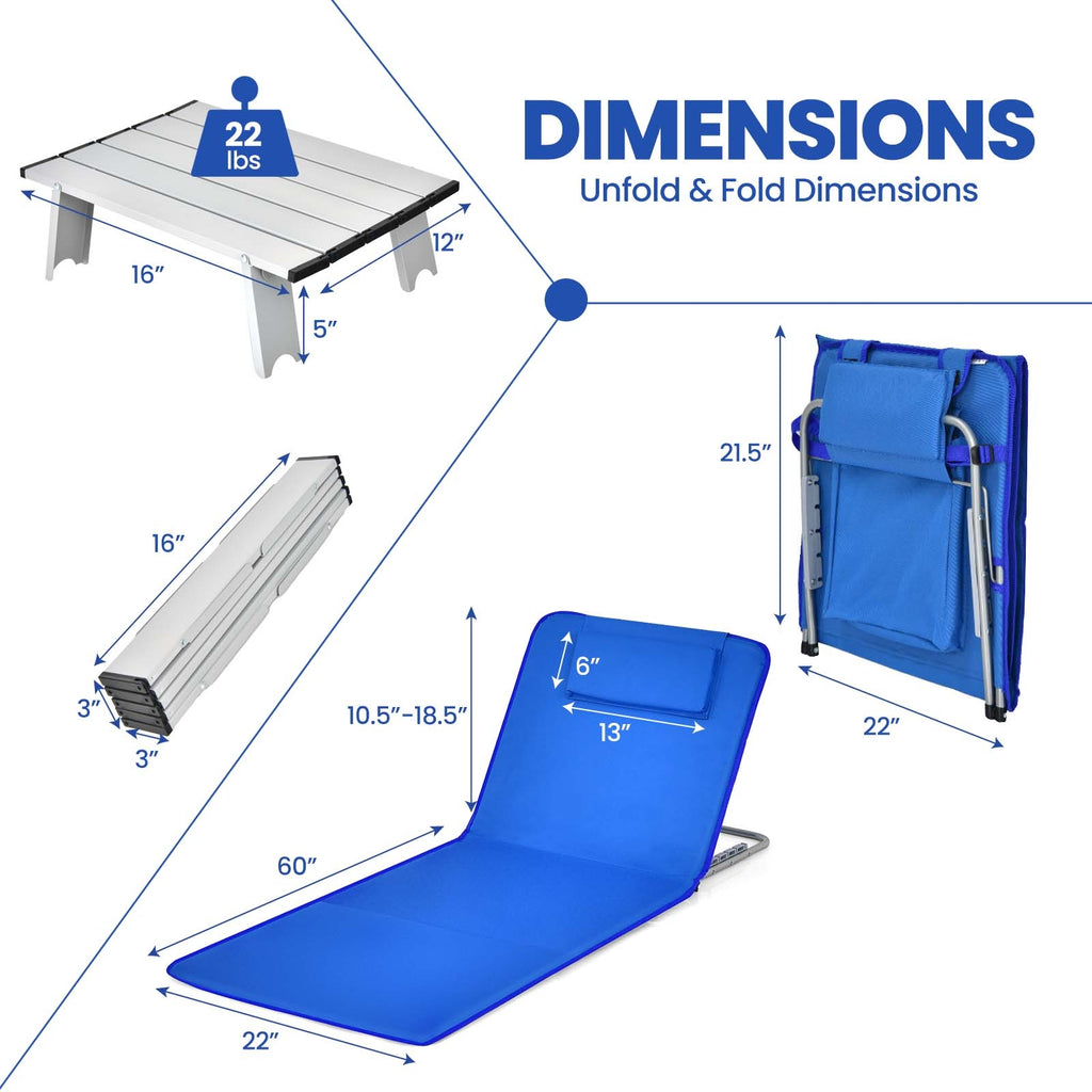 Make the most of your sunny days with this Beach Mat and Table Set, designed to offer the ultimate comfort and convenience during your outdoor activities. Whether you’re soaking up the sun at the beach, lounging by the pool, or relaxing in your garden, this set includes everything you need for a comfortable and enjoyable experience. Featuring 2 reclining loungers, a folding table, and a range of practical features, this set is perfect for sunbathing, chatting with friends, or resting after swimming.