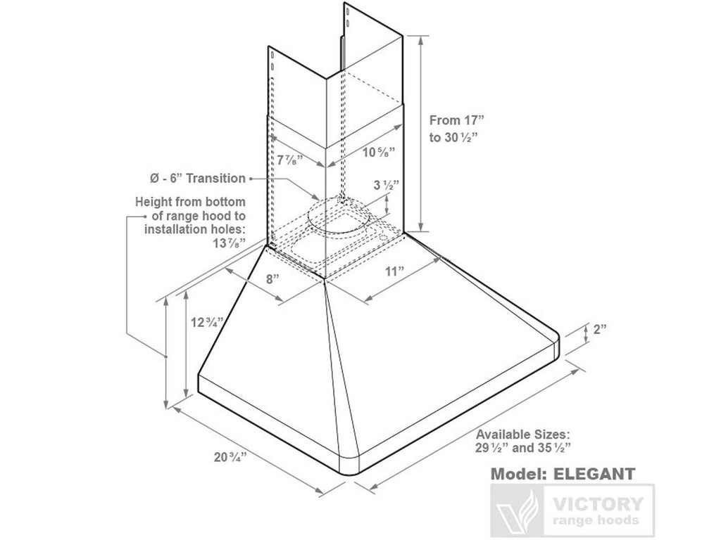 Upgrade your kitchen with the VICTORY Elegant 30-inch wall-mounted range hood, designed for reliability and performance. Easy to install and built for long-lasting use, this chimney hood efficiently removes smoke, steam, odors, and grease while enhancing your cooking experience. Bright LED lights illuminate your cooktop, and mechanical switches make operation simple and intuitive. Unlike other range hoods, the VICTORY Elegant features a lifetime motor warranty, providing unmatched peace of mind. Perfect for homeowners seeking a stylish, durable, and high-performing wall-mounted range hood.