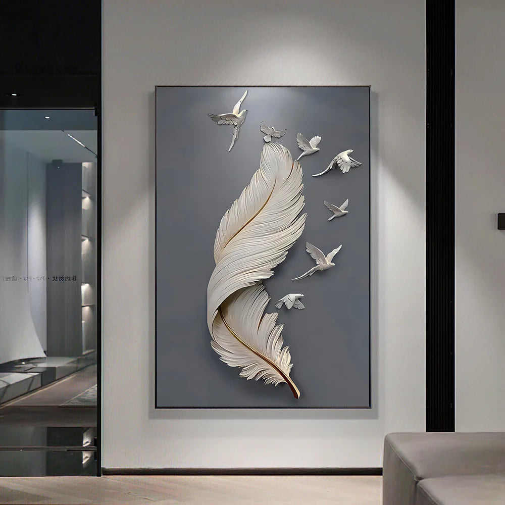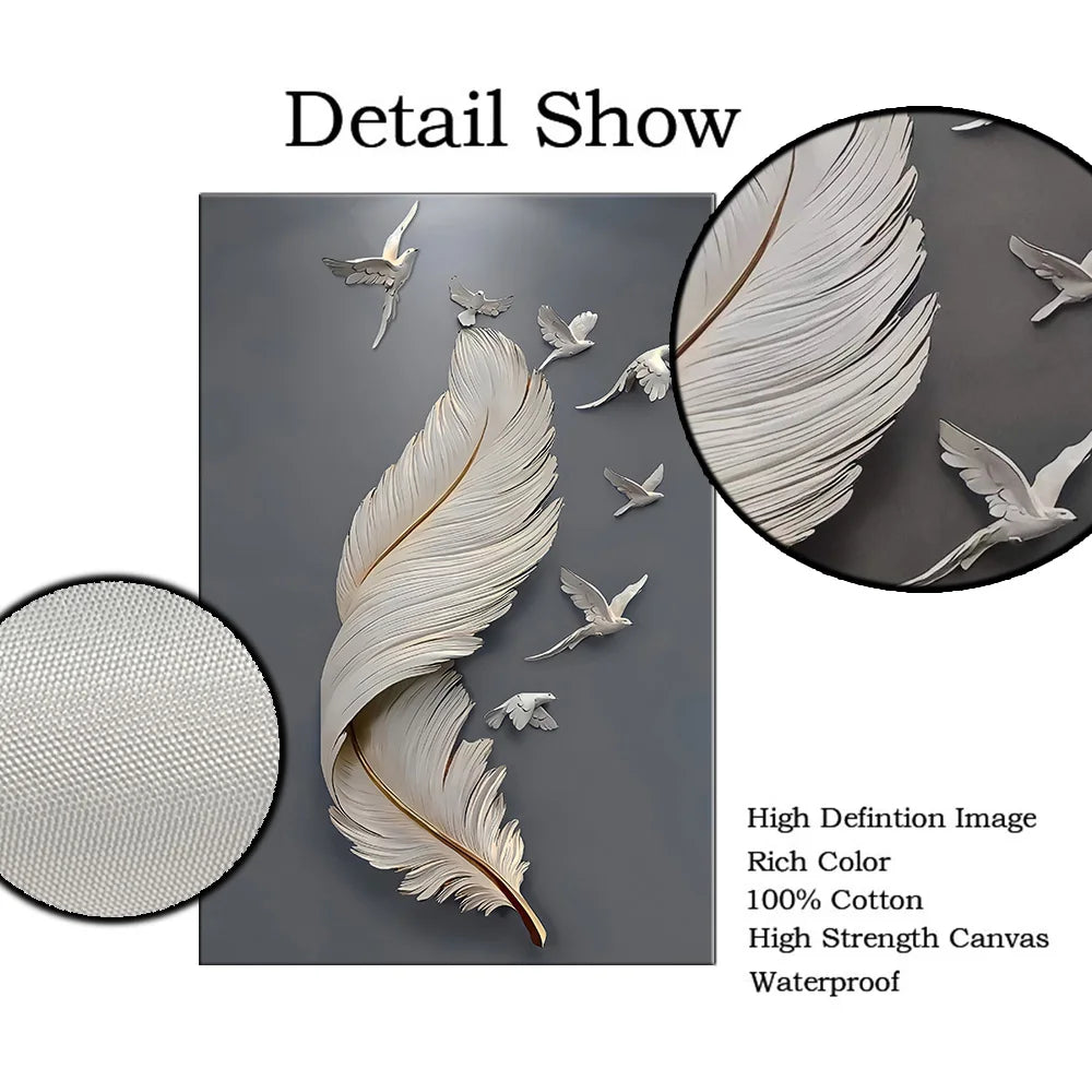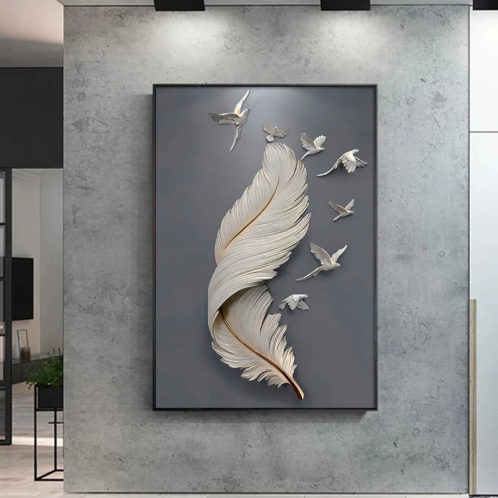 Elevate your living space with the 3D Effect Feather Pigeon Canvas Painting. This modern wall art features a striking abstract design with a 3D effect that brings the feather pigeon to life. The minimalist picture adds a touch of elegance and contemporary style to any room, making it an ideal choice for home decor. Perfect for living rooms, bedrooms, or any space that needs a stylish and artistic touch.