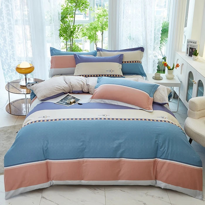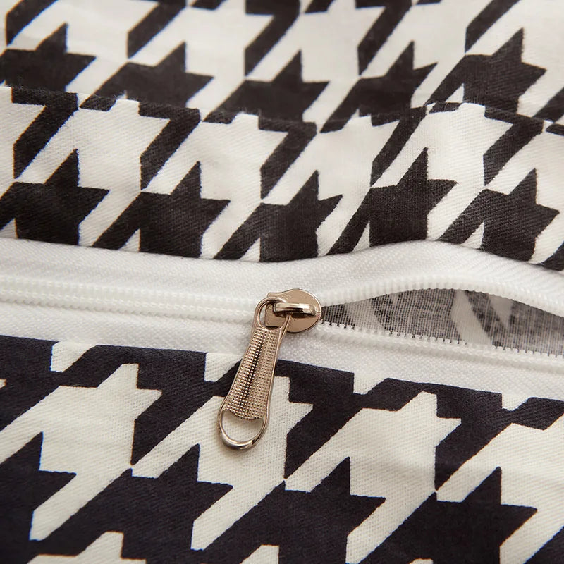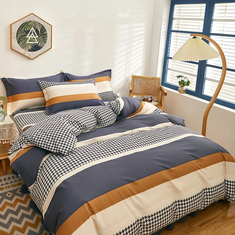 Enhance your bedroom with the 3PCS Stripe Duvet Cover Set, crafted from 100% cotton for ultimate comfort and breathability. This bedding set features a geometric stripe pattern that adds a modern touch to your decor. The reversible design offers two stylish looks in one set, while the soft cotton fabric ensures a cozy sleep environment. Available in Queen and King sizes, this set includes a duvet cover and matching pillowcases, making it a perfect choice for both style and practicality.
