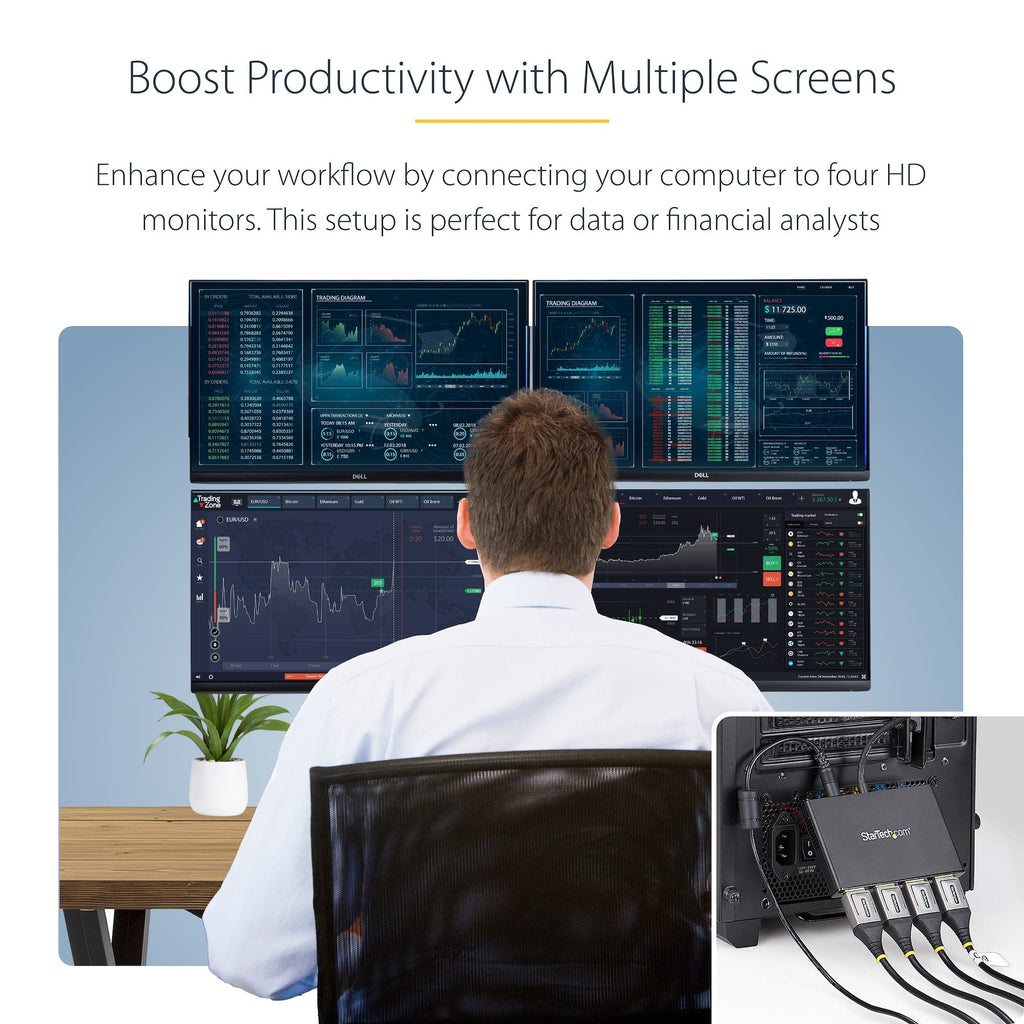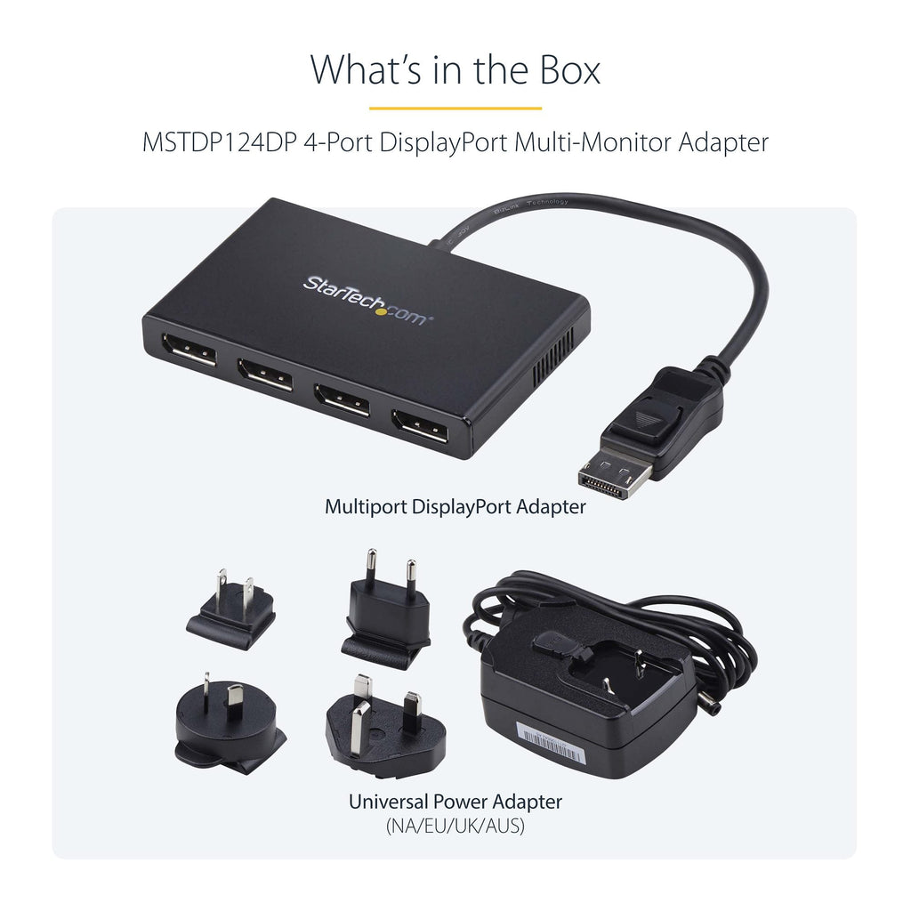 Quad Monitor Support – Connect up to 4 DisplayPort displays from a single DP source