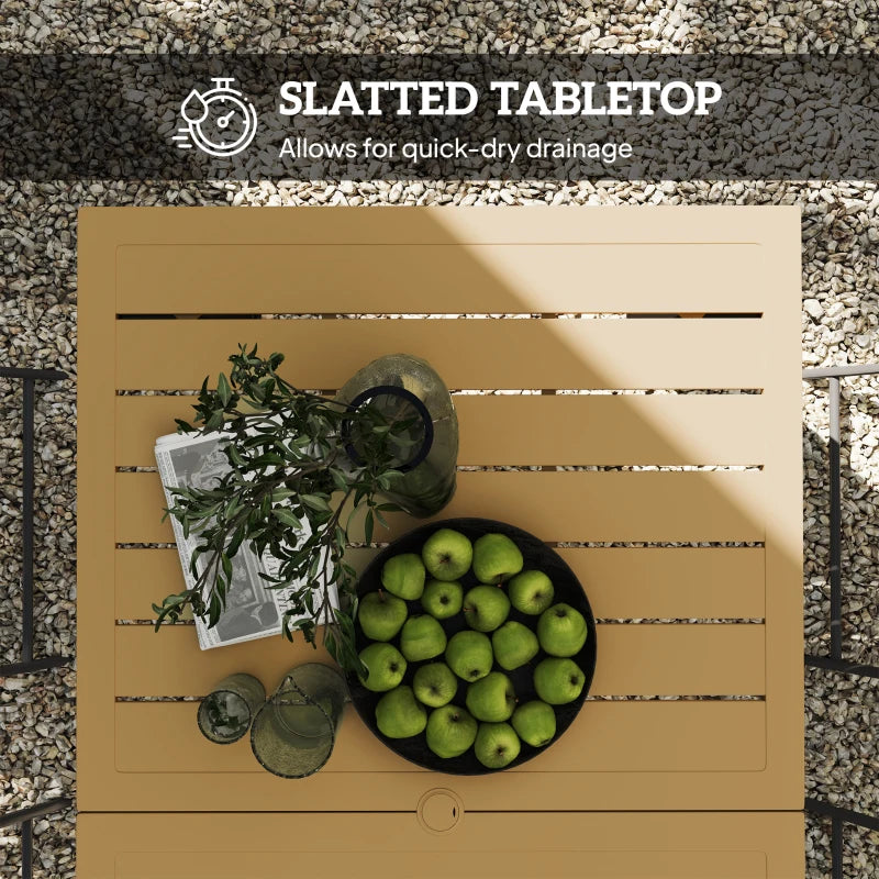 - Slatted tabletop design promotes airflow and prevents water buildup