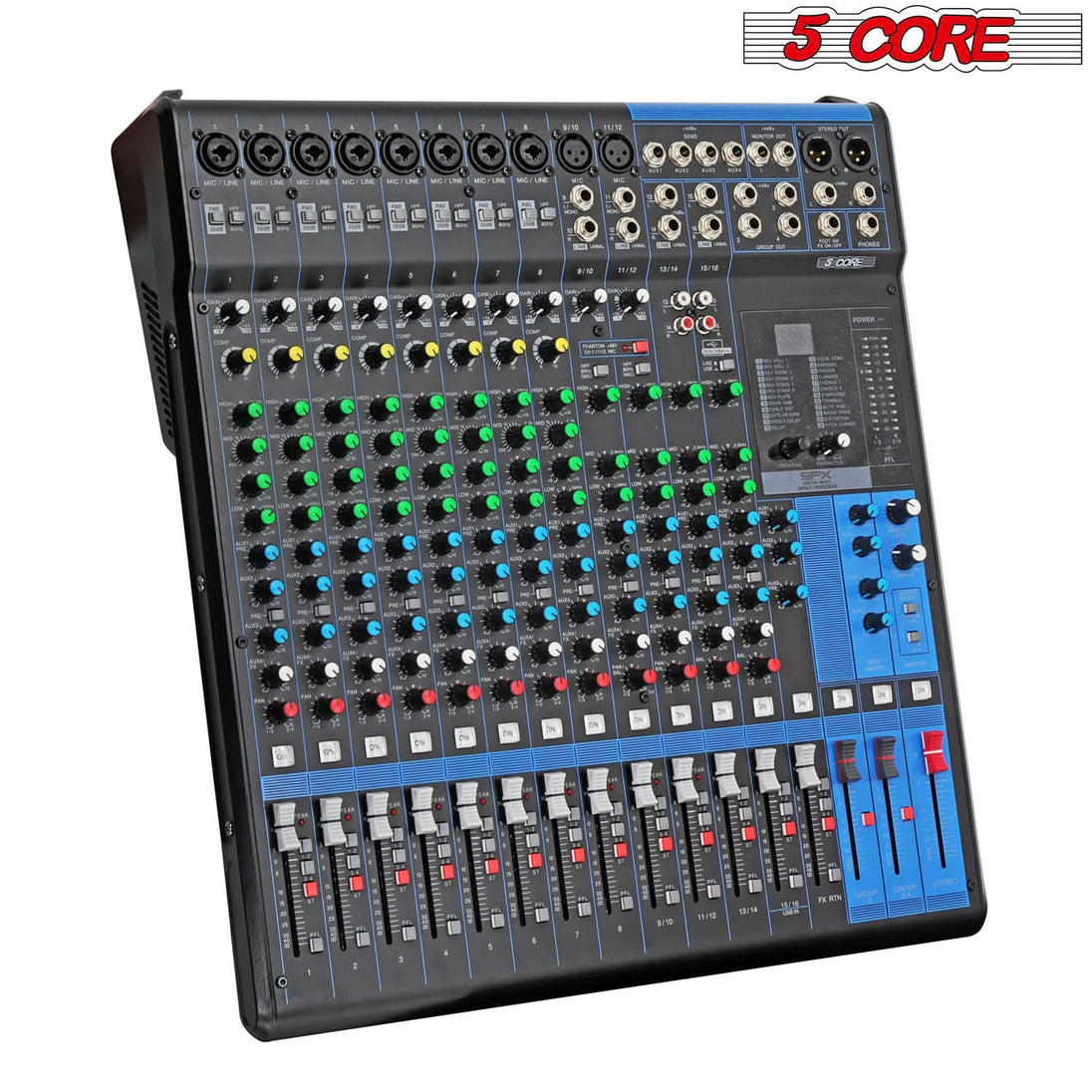 Elevate your audio production to professional heights with our meticulously engineered 16 channel audio mixer. This sound board is designed for the audio engineer and offers unparalleled precision and versatility. With sixteen channel microphone input including mono and stereo configurations, each featuring finely made ports for enhanced stability. With the precise vocal adjustment controls on every channel, including Gain, FX, PAN, and a High/Mid/Low 3-band EQ, achieving the perfect mix has never been easier. Built with premium material, this audio mixer is the epitome of professional sound excellence. |