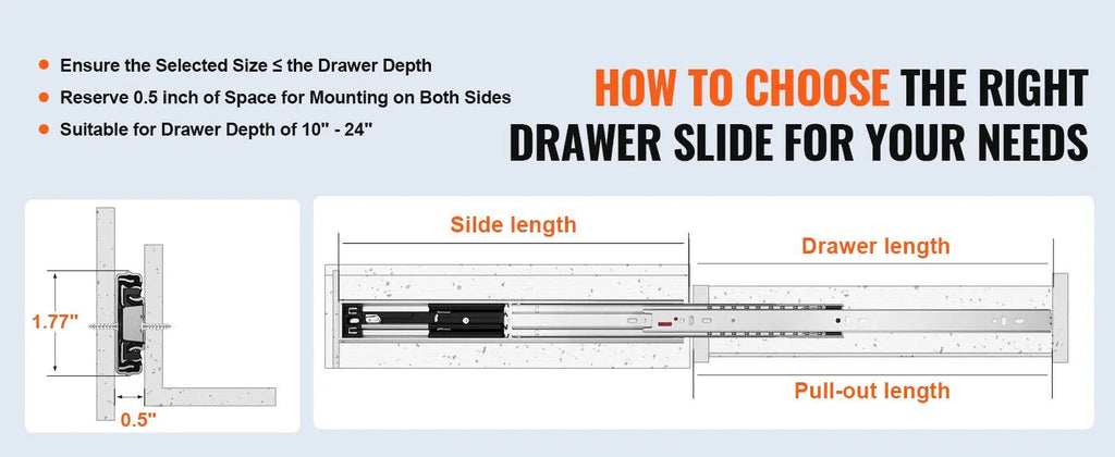 Smooth and Quiet Operation with Soft-Close FeatureIt's great to use the VEVOR drawer slides smoothly and quietly. They have ball bearings that allow for effortless movement. You can open and close the drawers without noise. The soft-close feature prevents tripping. It also ensures the shelves close gently and quietly. This is perfect for kitchens and bedrooms. There is no need to worry about loud noises. Smooth operation makes using these slides enjoyable. They add elegance to any furniture. These slides are designed for convenience and comfort.