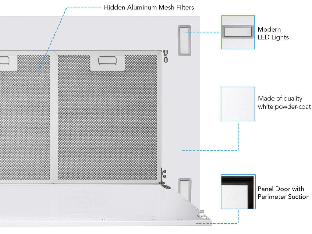 Elevate your kitchen with the VICTORY Sunset 600 CFM white flush ceiling mount range hood. Designed and assembled in Canada, this innovative hood seamlessly integrates into open-concept kitchens without the need for reframing. Its sleek, minimalist white design enhances any modern kitchen aesthetic while delivering professional-grade performance. The powerful 600 CFM blower efficiently removes smoke, odors, and grease, while bright dimmable LED lights illuminate your cooktop for optimal visibility. Perfect for contemporary kitchens, the Victory Sunset combines style, functionality, and quiet, powerful ventilation.