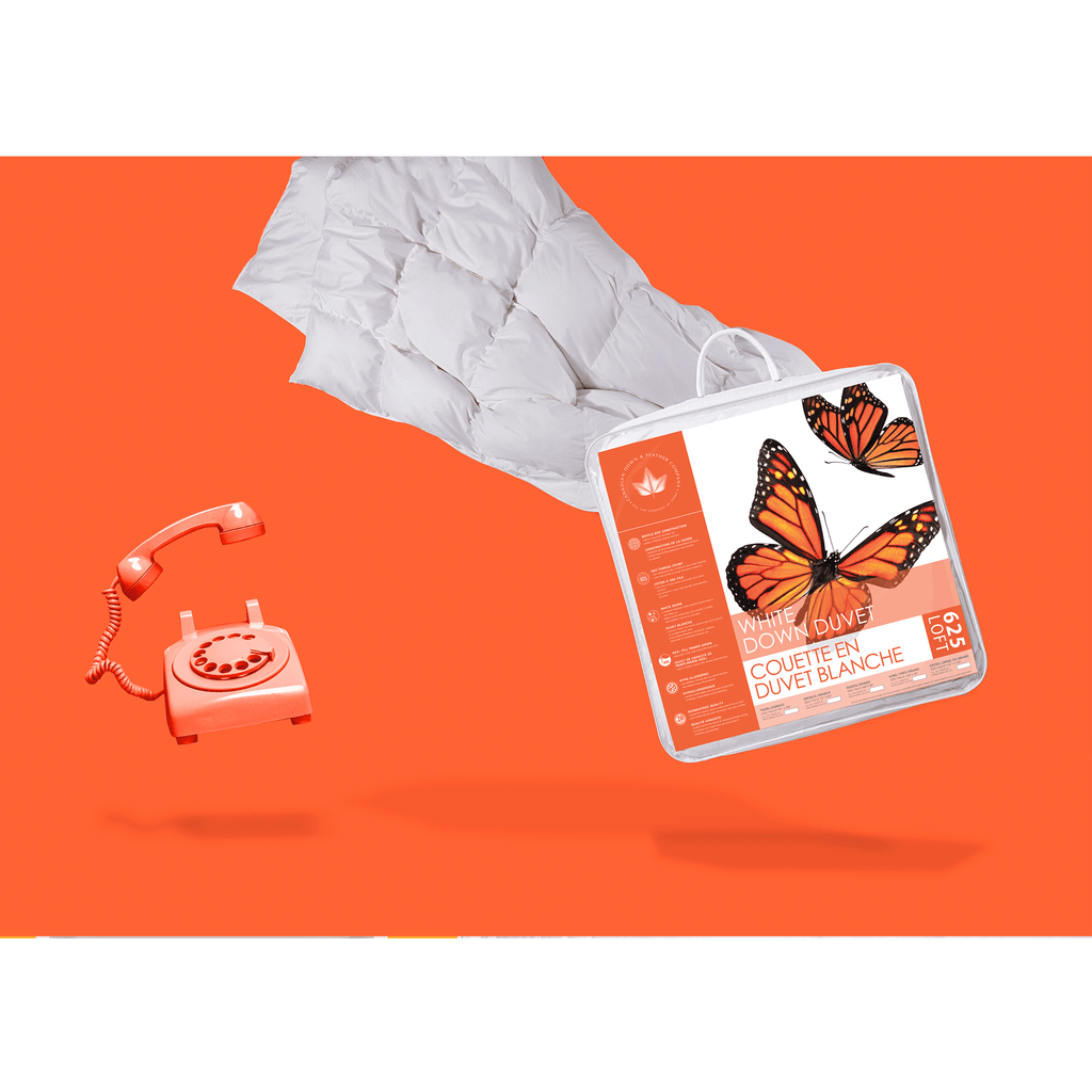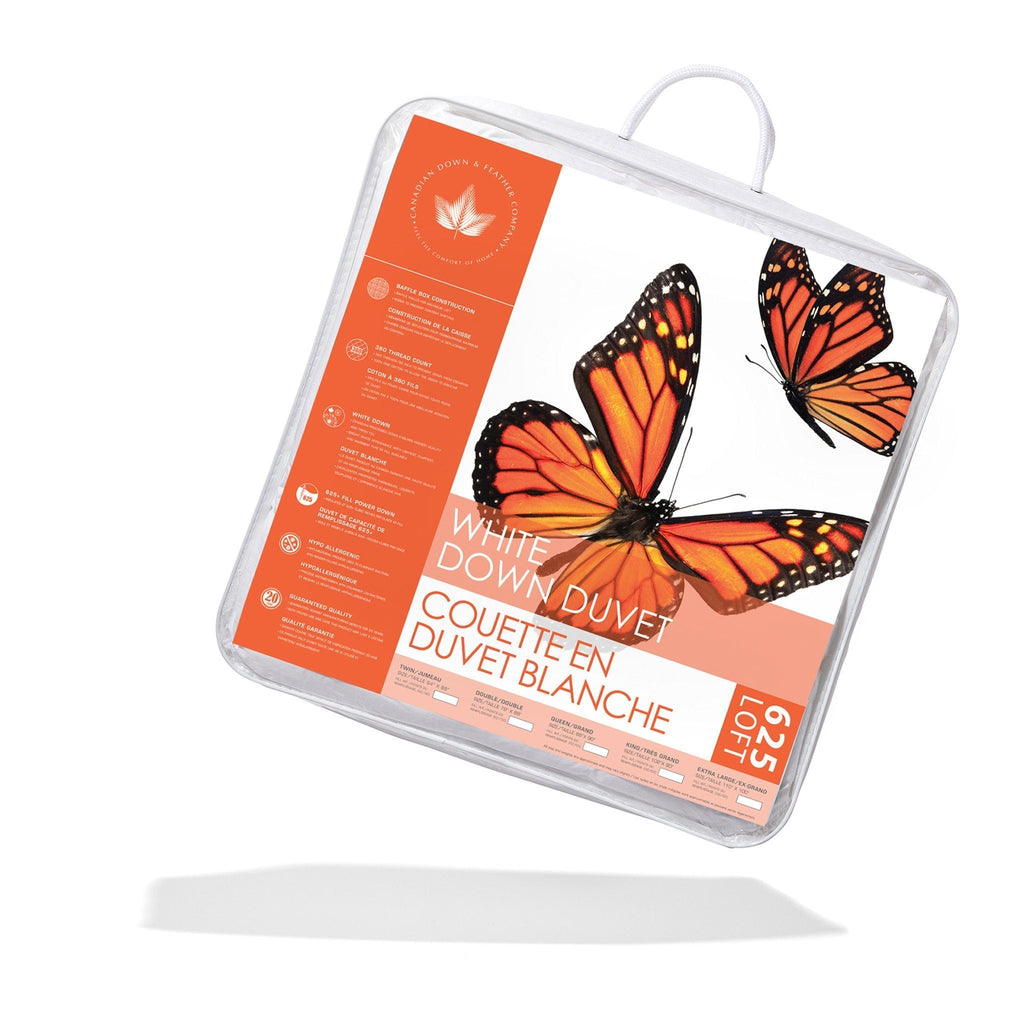 Experience luxurious comfort with the 625 Loft White Down Duvet, filled with care in Canada using premium 625 loft duck down. Encased in a 360 thread count 100% cotton shell, this duvet is soft, breathable, and quiet, ensuring a restful night’s sleep. The down clusters offer exceptional warmth and lightness, while the baffle box construction maintains even fill distribution for lasting loft and comfort. Available in Summer, Regular, and All-Season weights, it’s perfect for all climates and sleeping preferences. Certified to RDS and OEKO-TEX® Standard 100, this duvet guarantees purity, safety, and ethical sourcing.