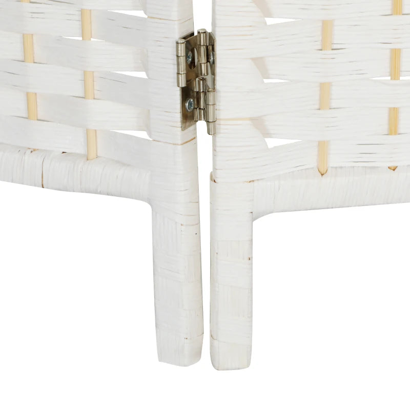 This 6FT Folding Room Divider with four panels provides stylish privacy and flexible room separation for any indoor space. Featuring a hand-woven diamond rattan design with a bent wood arched top, it adds a natural, bright tone to bedrooms, living rooms, or home offices. Constructed with solid wood frames, double-sided woven rattan, and metal hinges, the divider is stable, durable, and allows air circulation. Dual-directional hinges enable adjustable positioning, and its lightweight design ensures easy portability. Perfect for creating private spaces, dividing rooms, or enhancing décor, this divider comes ready-to-use straight out of the box.