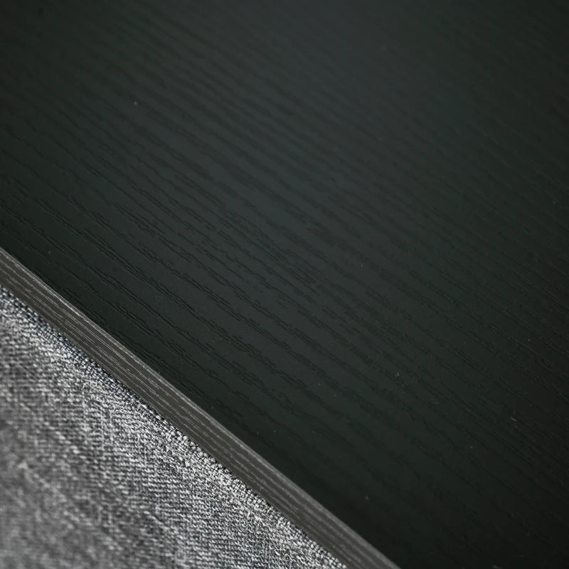 - Material: Steel frame, MDF top, linen fabric bins