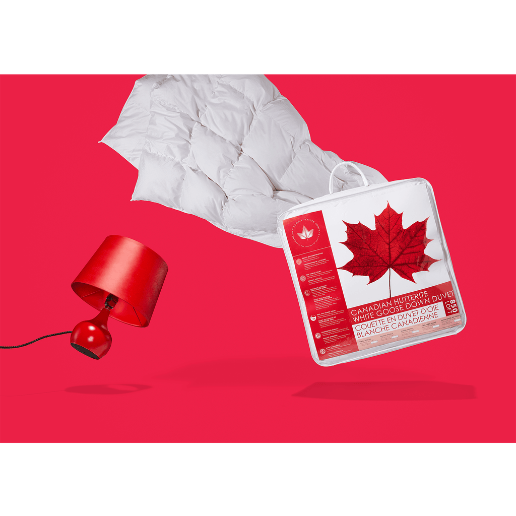The 850 Loft Hutterite Goose Down Duvet is crafted in Canada using premium Canadian goose down. Its 500 thread count cotton shell is soft, quiet, and breathable, while the high-loft 850 fill provides exceptional warmth with minimal weight. Filled with tiny, fluffy clusters of Hutterite goose down from Alberta, this duvet offers luxurious comfort and insulation. Ideal for all-season use, it comes in Regular Weight for warmer sleepers or All Season Weight for cooler bedrooms. Combining quality craftsmanship, hypoallergenic treatment, and RDS certification, this duvet ensures a long-lasting and safe bedding experience.