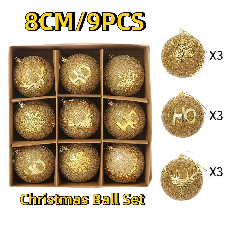 Elevate your holiday decor with the 8cm/9pcs Christmas Ball Set. This elegant set of Christmas ornaments is designed to add a touch of festive charm to your Christmas tree, wreaths, garlands, or any holiday display. With their classic size and design, these ornaments offer a perfect balance of style and versatility for a sophisticated holiday look.