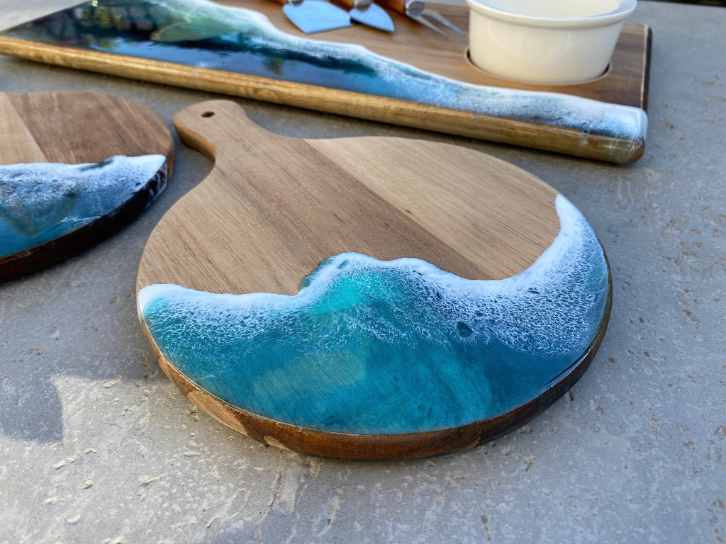 Serve your favorite snacks in style with the Acadia Charcuterie Board Gift Set. Inspired by ocean tones and coastal elegance, this beautifully designed serving board comes complete with matching serving plates, cheese knives, and a glass ramekin. Perfect for entertaining guests, gifting, or elevating everyday hosting, this set blends functionality with stunning presentation.