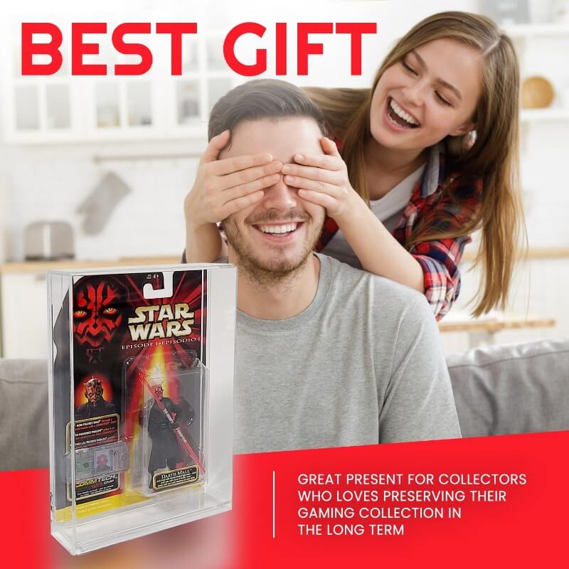 Protect and showcase your most valuable collectibles with the EVORETRO Acrylic Display Case for 3.75" carded action figures. Designed for Star Wars, GI-Joe, and similar vintage or modern figures, this premium clear case offers museum-quality protection while keeping your collectibles fully visible. Crafted from high-quality acrylic, it shields your figures from dust, scratches, UV exposure, and environmental damage while preserving their original condition.