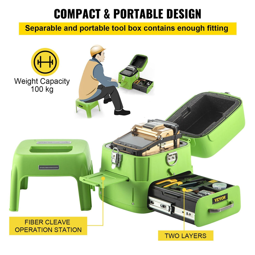 The AI-8 Fiber Optic Splicing Machine delivers excellent splicing performance with fast and precise fiber fusion splicing. Equipped with a 3-in-1 fiber holder and multi-functional port, this compact and portable fusion splicer is designed for versatility and ease of use. The device features a clear LCD display and a powerful 7800mAh battery for extended operation. Built with sturdy construction, it supports various fiber types including SM, MM, DS, and NZDS fibers. Automatic heating and six-motor auto-focus ensure consistent, low-loss splicing results ideal for fieldwork and professional fiber optic installation.