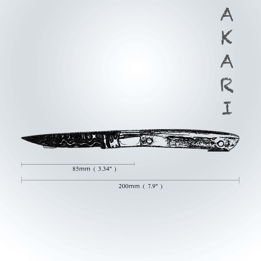 Experience the perfect blend of art and utility with the Ginza Steel AKARI Skinner Knife, meticulously handcrafted for hunters, outdoorsmen, and collectors who value both aesthetics and performance. Each knife is unique, featuring a stunning Damascus steel blade and a luxurious stag horn handle.