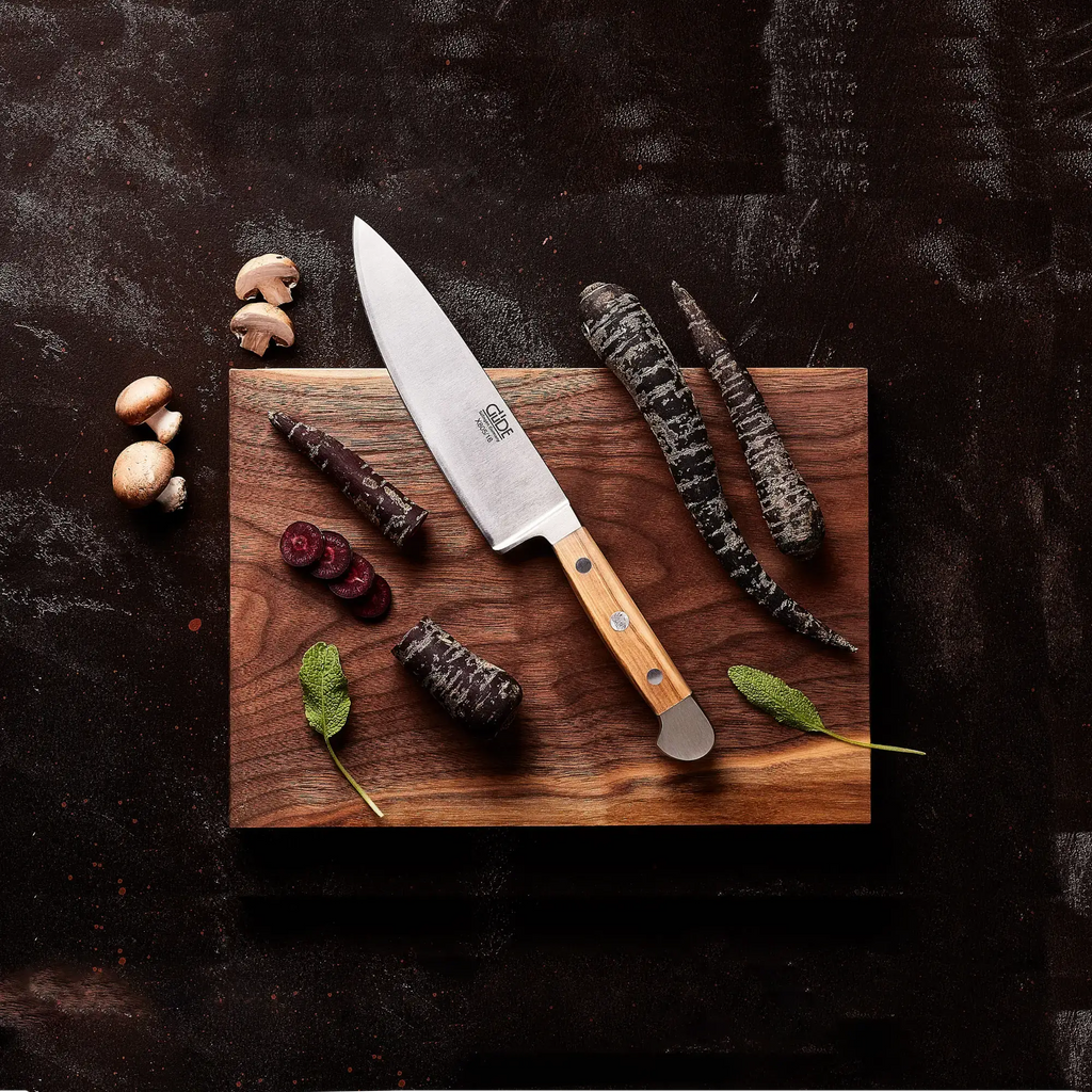 The GÜDE Alpha Olive Series Chef’s Knife is a versatile all-rounder designed for precision and efficiency in the kitchen. Perfectly suited for cutting fish, meat, fruits, and vegetables, this knife also excels at chopping and weighing herbs. Its wide blade allows easy lifting of ingredients, making prep work faster and more accurate. A must-have kitchen knife for both professional chefs and culinary enthusiasts.