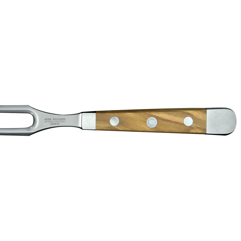Serve your favorite meat dishes with precision and elegance using the GÜDE Alpha Olive Meat Fork. Crafted from high-quality materials, this meat fork combines durability with timeless design. The handle, made from beautiful Olive wood, provides a comfortable and secure grip, making it both functional and stylish for your dining table.