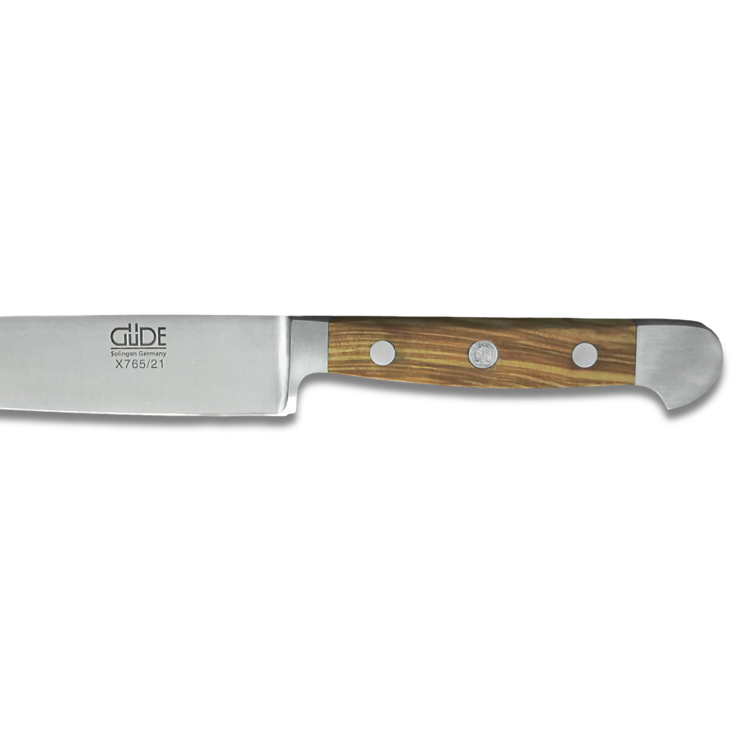 Experience precise and effortless slicing with the GÜDE Alpha Olive Series Ham Knife. Featuring an 8-inch stainless steel blade, this knife is designed to cut ham and other deli meats with accuracy and ease. The ergonomic handle, crafted from genuine olive wood, ensures a comfortable and secure grip, making every slice smooth and controlled. Handcrafted by GÜDE in Solingen, Germany, this knife combines superior craftsmanship, durability, and timeless elegance for both professional chefs and home cooks.
