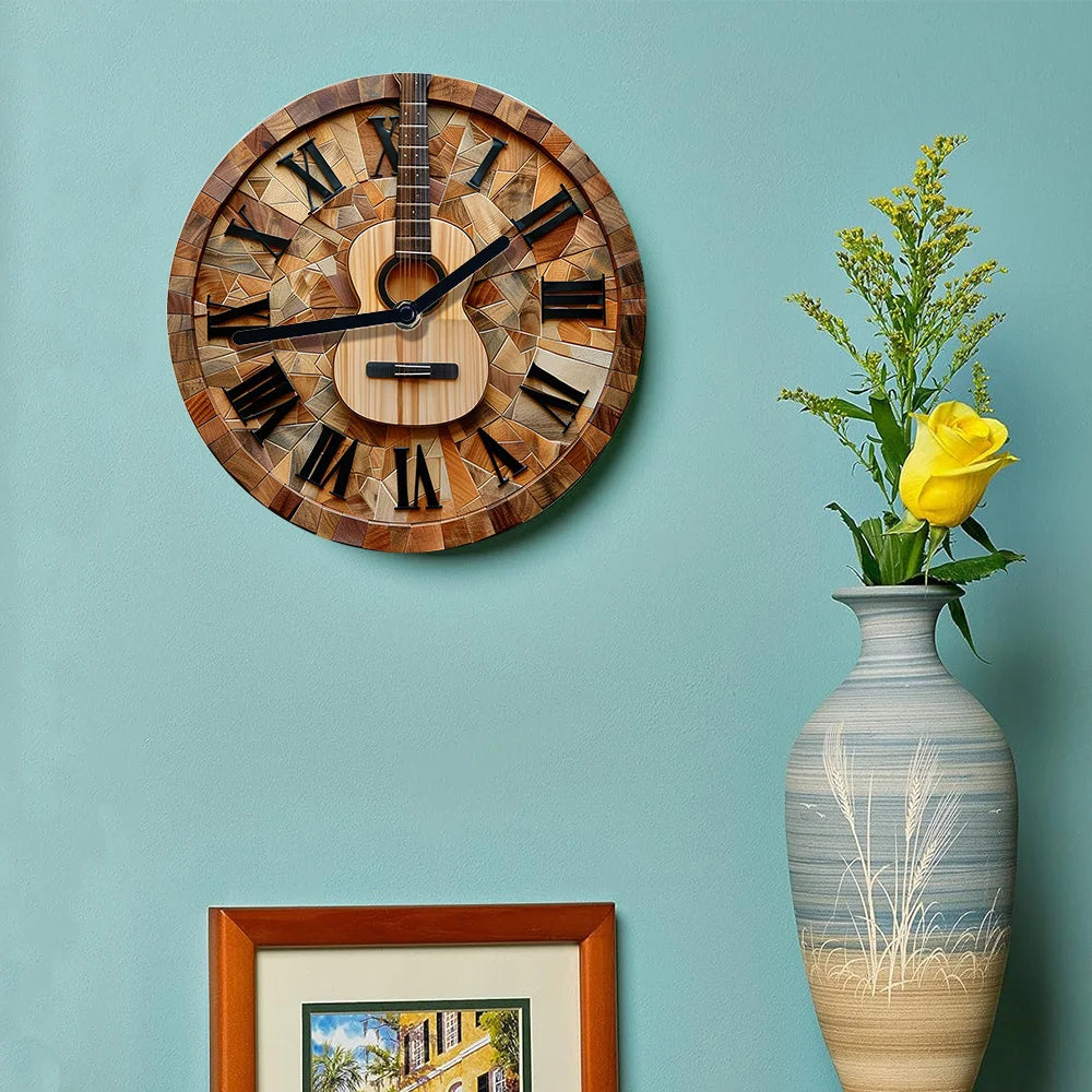 Add a touch of musical artistry to your living space with the Aluminum Silent Wall Clock with Guitar Design. Perfect for music lovers and creative souls, this elegant clock features a sleek guitar-shaped design, blending modern craftsmanship with a passion for music. The clock’s aluminum frame offers durability, while its silent quartz movement ensures a peaceful, distraction-free environment. Whether displayed in a living room, music room, or studio, this unique wall clock serves as both a functional timepiece and an artistic decor statement.