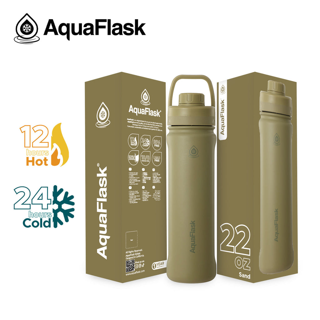 Stay hydrated and energized with the AquaFlask Sports Bottle 650ml (22 oz), designed for active lifestyles and everyday use. Crafted from premium 18/8 stainless steel with double-wall vacuum insulation, it keeps drinks cold for up to 24 hours or hot for 12 hours. The leak-proof sports lid and wide-mouth opening make it easy to sip, refill, and clean, while the sweat-free powder-coated finish ensures a comfortable, non-slip grip. BPA-free, eco-friendly, and built to perform wherever life takes you.