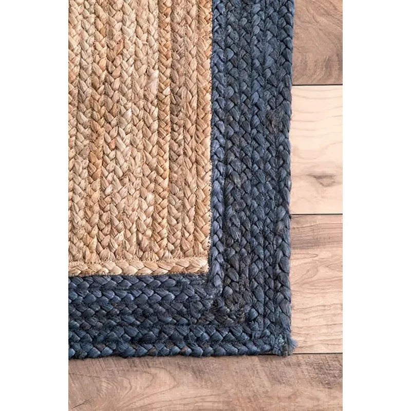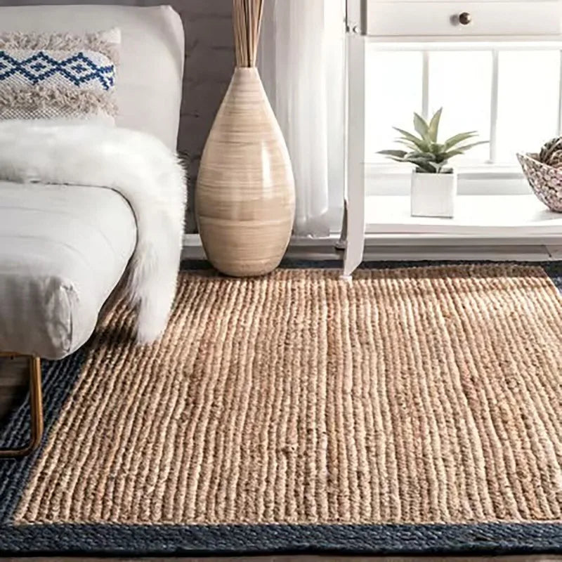 Blue Strip Detail: Adds a modern, stylish accent to the natural texture of the rug.