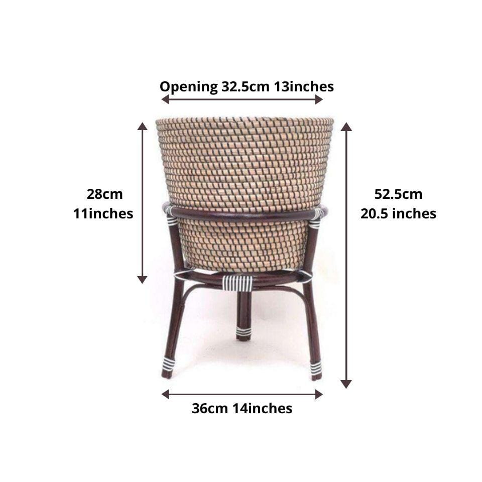 Elevate your home or office décor with the Ayu Boho Floor Planter on Wooden Stand. Handcrafted from sustainably-grown natural materials like bamboo, water hyacinth, rattan, and hardwood, this floor planter combines eco-friendly design with boho-chic style. Its shapely, textured fibers make each piece unique, while the lightweight, durable construction allows for easy placement. Perfect for artificial plants, rocks, or moss, the Ayu planter brings mid-century boho vibes and natural elegance to any room.