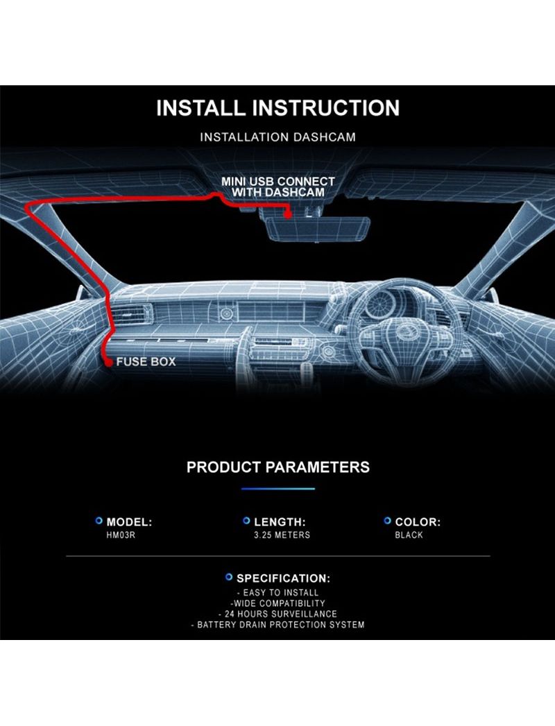 The Azdome HM03 Hardwire Kit ensures continuous power for your dash camera, even when your vehicle is turned off. Designed for easy installation, it enables 24-hour surveillance of your car, helping you capture every moment and providing peace of mind with reliable vehicle protection.