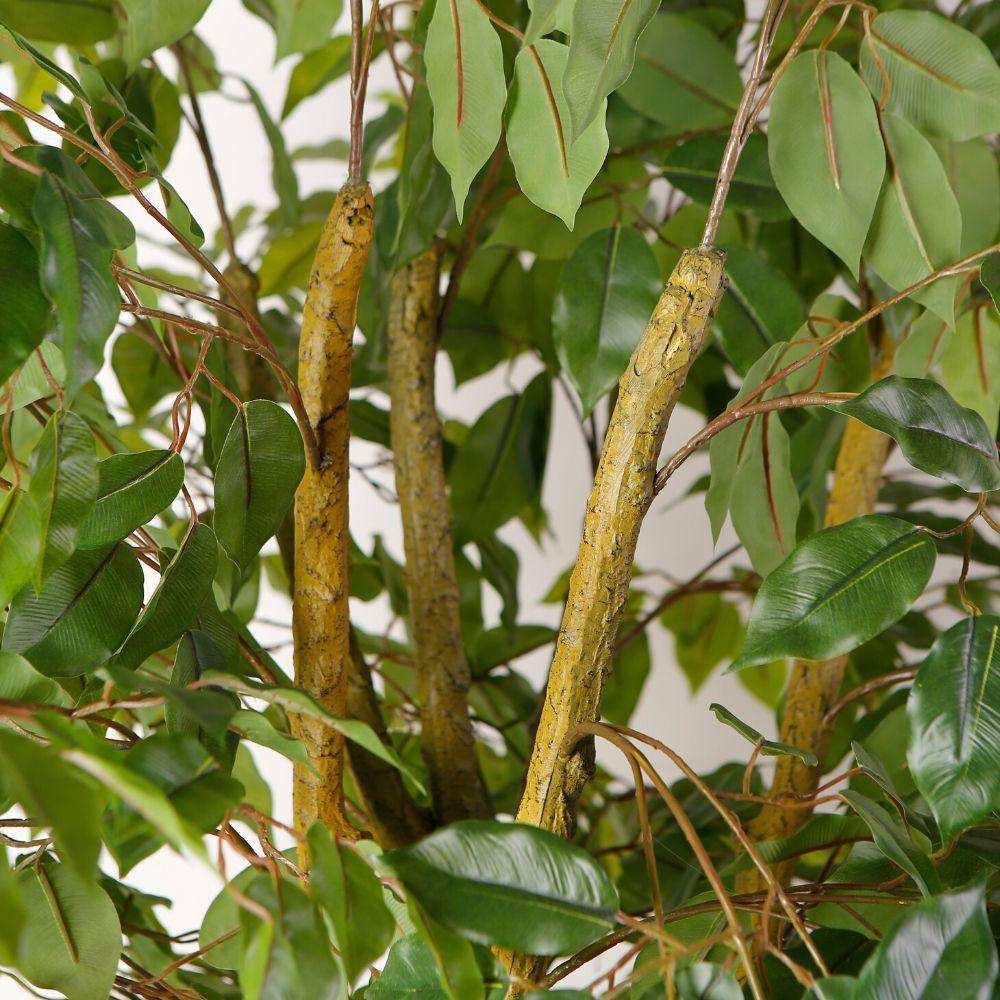 Elevate your indoor space with the Bea Artificial Ficus Potted Plant, a stunning faux tree designed with intertwined trunks and lush, hand-painted foliage. Standing 6.5 feet tall with a wide, spreading canopy, this artificial ficus delivers a modern and sophisticated touch without any maintenance. Realistic silk-printed leaves and a trunk adorned with real bark create an authentic look, perfect for living rooms, offices, or commercial spaces. Enjoy vibrant greenery year-round with zero watering, pruning, or sunlight requirements.