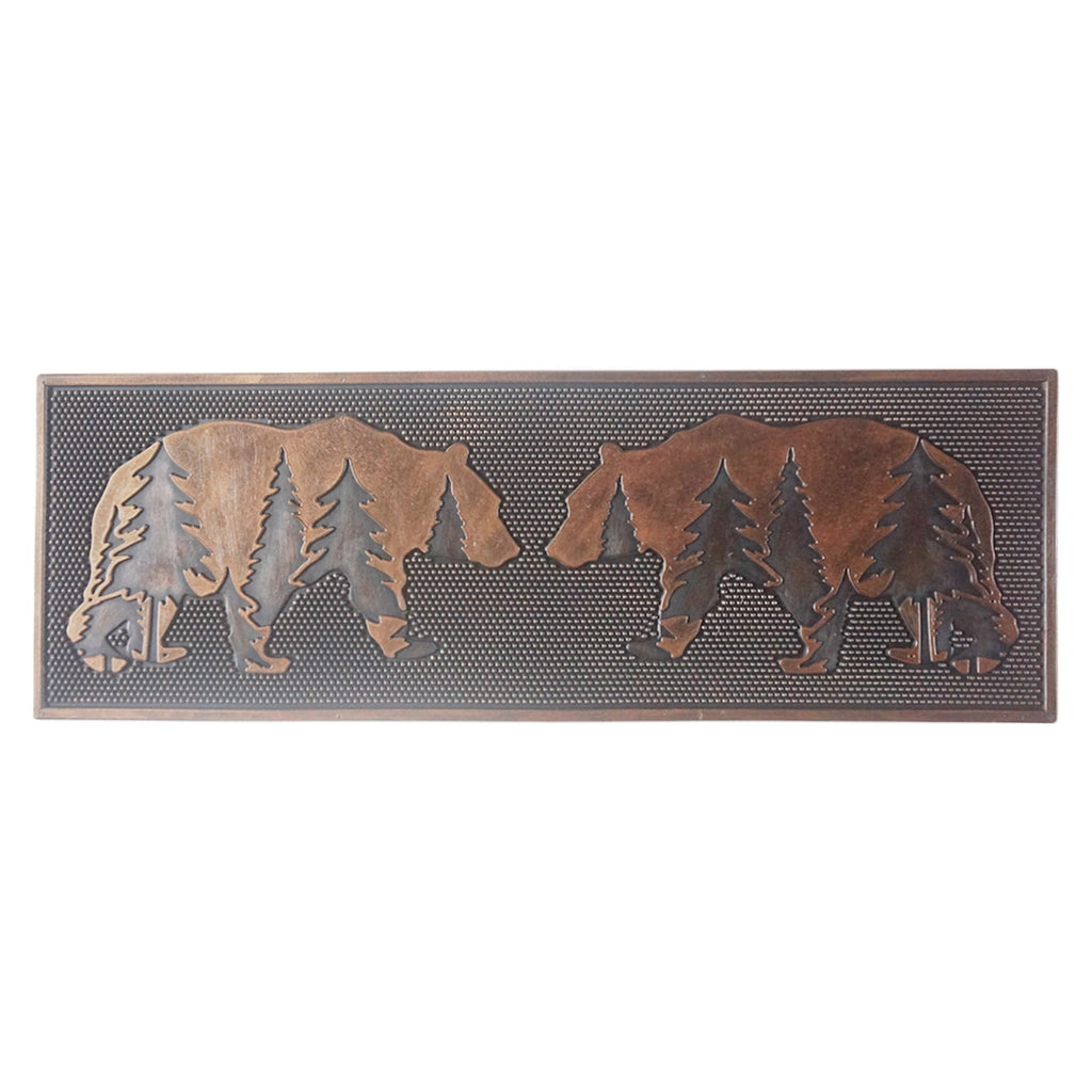 Add charm and function to your entryway with the Bear Pattern Rubber Step Mat. Designed with a detailed bear motif and finished in a rustic copper tone, this mat not only enhances your doorway but also provides a non-slip surface for safety. Crafted from durable rubber, it withstands heavy foot traffic and is easy to clean, making it both practical and decorative. Perfect for cabins, rustic homes, or nature-inspired spaces.