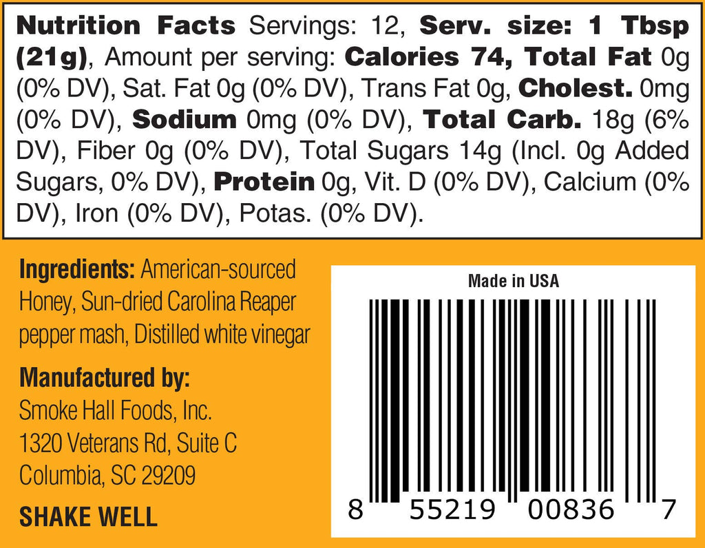 Ingredients: Honey, Sun-Dried Carolina Reaper Mash