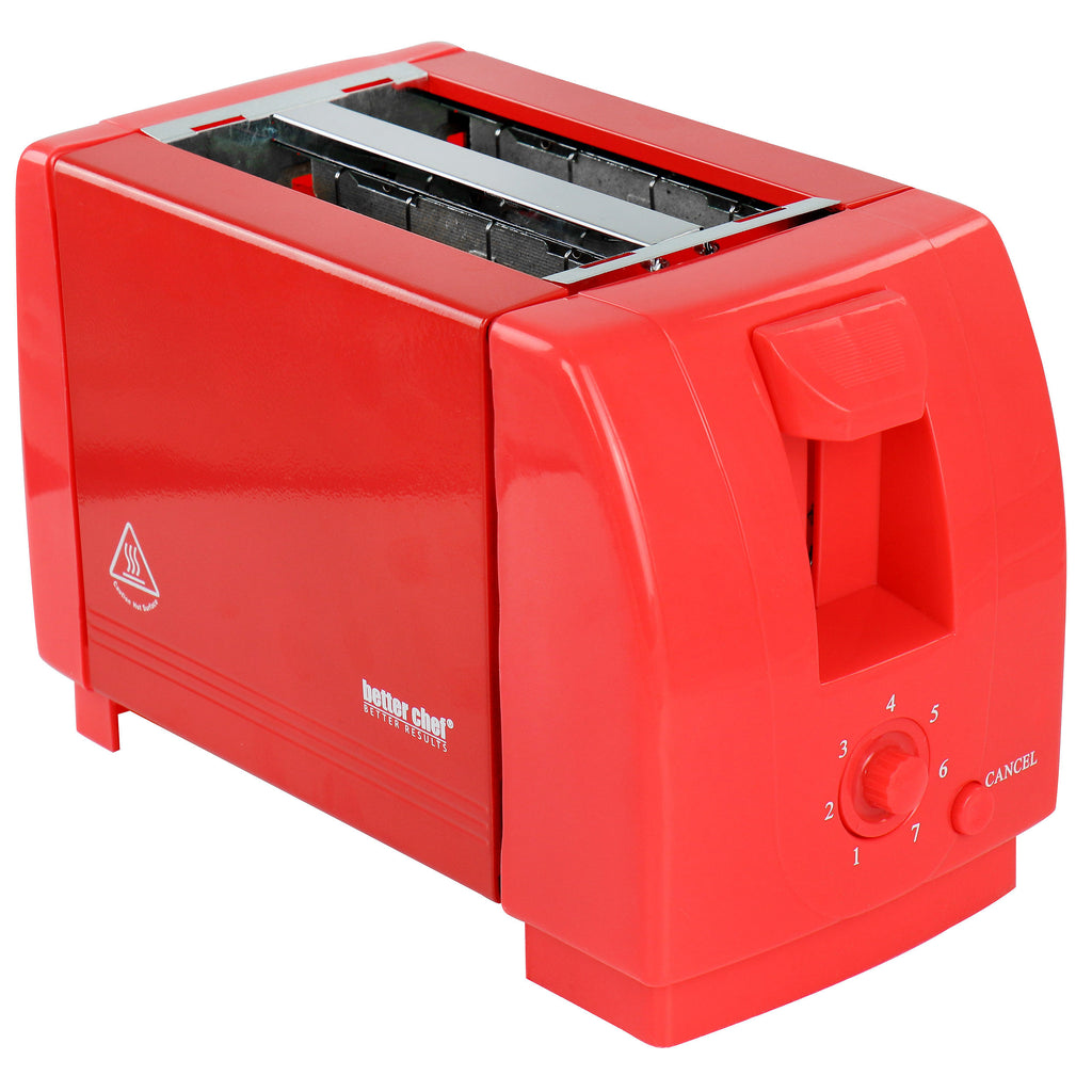 Toast to perfection with the Better Chef Compact Two-Slice Countertop Toaster in striking red. This sleek and space-saving toaster is designed for efficiency and style, featuring multiple browning settings to suit your preferences. Ideal for any kitchen, its compact design fits neatly on your countertop while its vibrant color adds a bold touch to your kitchen decor. Enjoy the convenience of free shipping with your purchase.