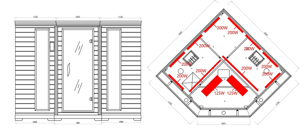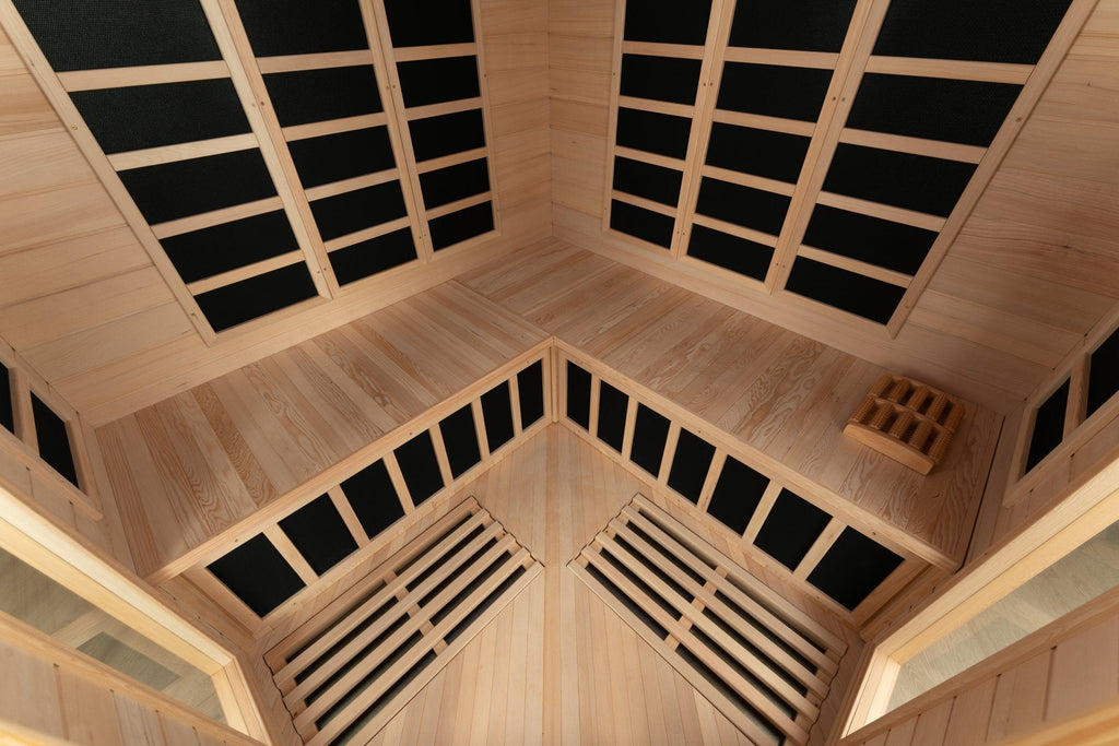 12 High-Performance Heaters: Includes 6 back, 2 side, 2 below-bench, and 2 floor Far Infrared heaters for enhanced circulation and full-body therapy.