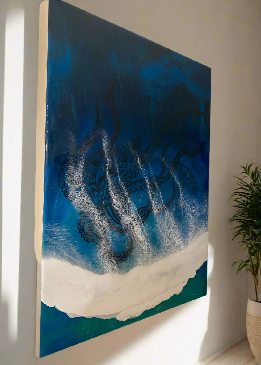 Enhance your space with “Breakwater,” an original painting on a cradled birch panel finished with archival grade resin. Handmade with precision, this 24"x18" artwork showcases stunning textures and vibrant colors, making it perfect for home décor, office spaces, or as a unique gift for art collectors.