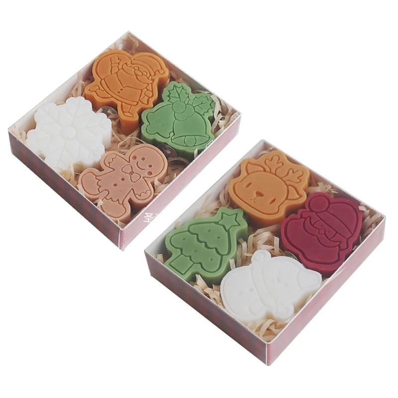 Festive Designs: Each candle in this set is uniquely shaped, featuring beloved holiday characters like Father Christmas, a snowman, and a gingerbread man, adding a playful element to your decor.