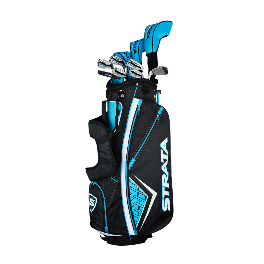 The Callaway Strata Plus 14-Piece Women’s Golf Set is designed to deliver maximum performance, forgiveness, and distance for beginner and intermediate female golfers. Featuring a 460cc driver, fairway wood, hybrid, irons, wedges, and a mallet putter, all in a stylish lightweight stand bag with matching headcovers. Optimized shafts and lofts help improve swing speed and consistency, providing everything needed to play confidently.