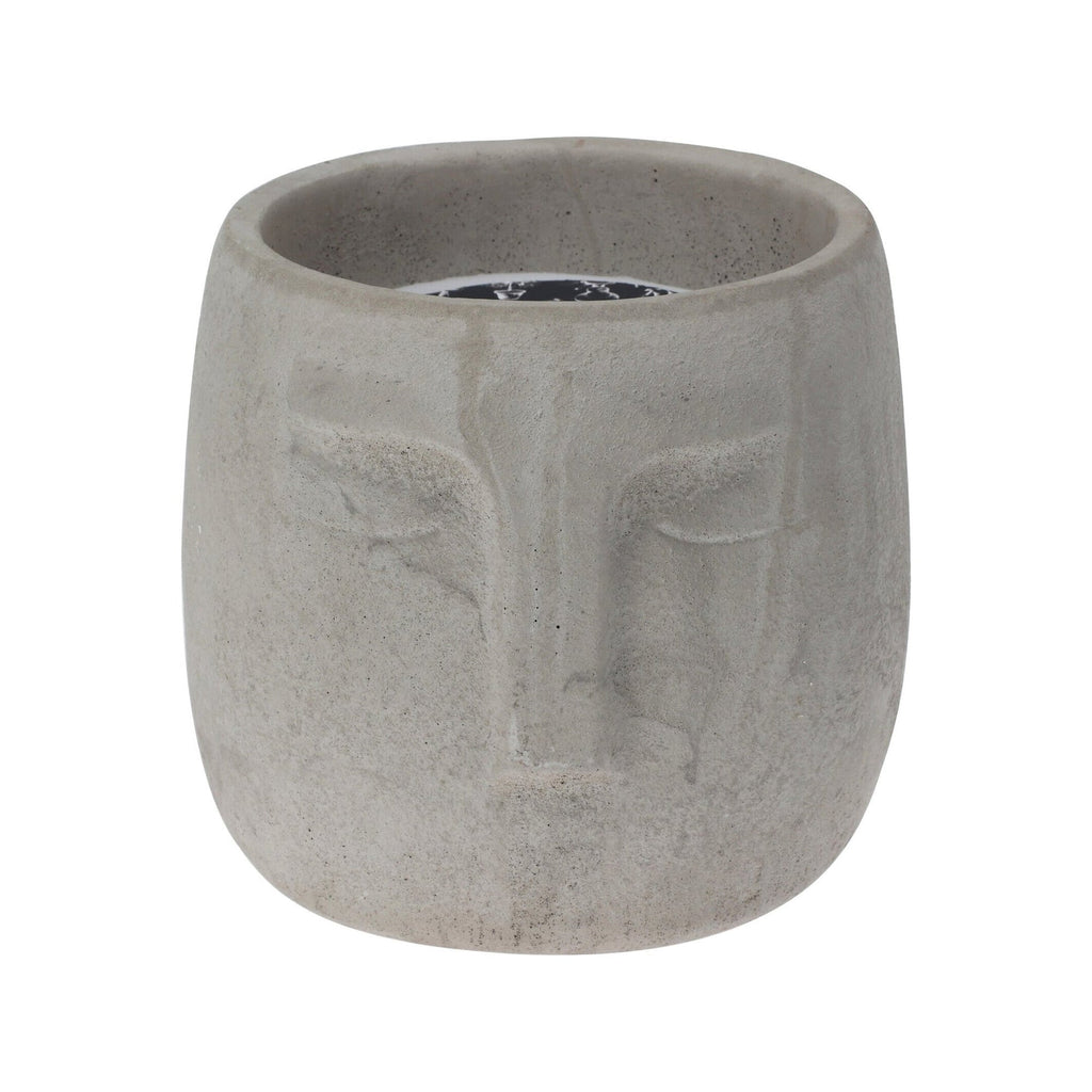 Add a unique and artistic touch to your home décor with this candle in a cement pot featuring a face design. The minimalist grey cement pot beautifully complements the clean white wax, making it a stylish accent piece for modern or rustic interiors. Once the candle burns out, the pot can be repurposed as a small planter or decorative holder, offering long-lasting versatility.