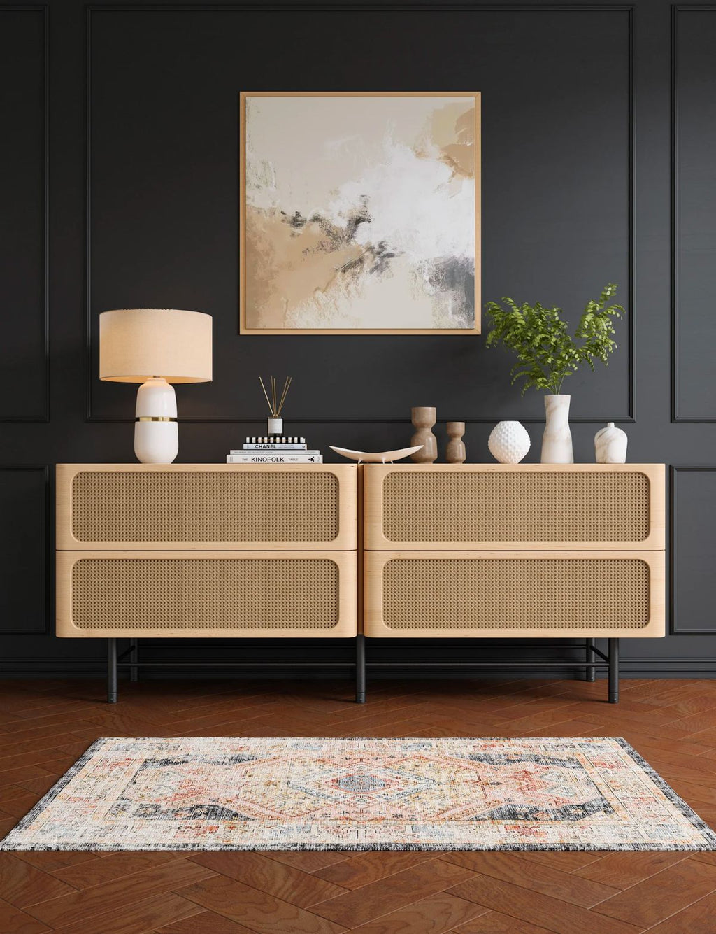 Add a bold and elegant touch to your home with the Caspara Orange Black Coral Rug. Featuring a Persian-inspired design with rich, saturated colors of orange, black, and coral, this rug becomes a stunning centerpiece for any room. The Caspara collection offers two versatile options: a convenient machine-washable rug for easy care, or a premium linen version for durability and effortless cleaning (not machine washable). Ideal for living rooms, bedrooms, or dining areas, this rug combines style, comfort, and functionality.