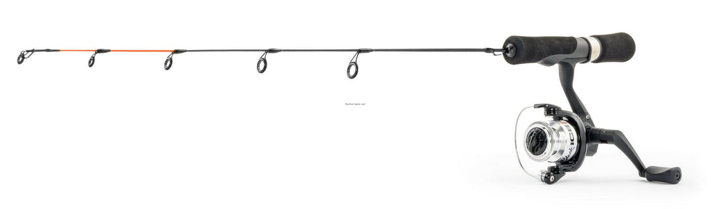 The Celsius Black Ice II Rod/Reel Combo 24" Ultra Light is perfect for beginner ice anglers. The fiberglass rod features a high-visibility orange tip for easy bite detection, while the spinning reel includes a single ball bearing and aluminum spool for smooth performance. Lightweight and easy to handle, this combo is ideal for freshwater ice fishing.