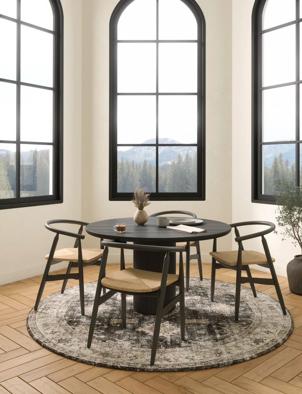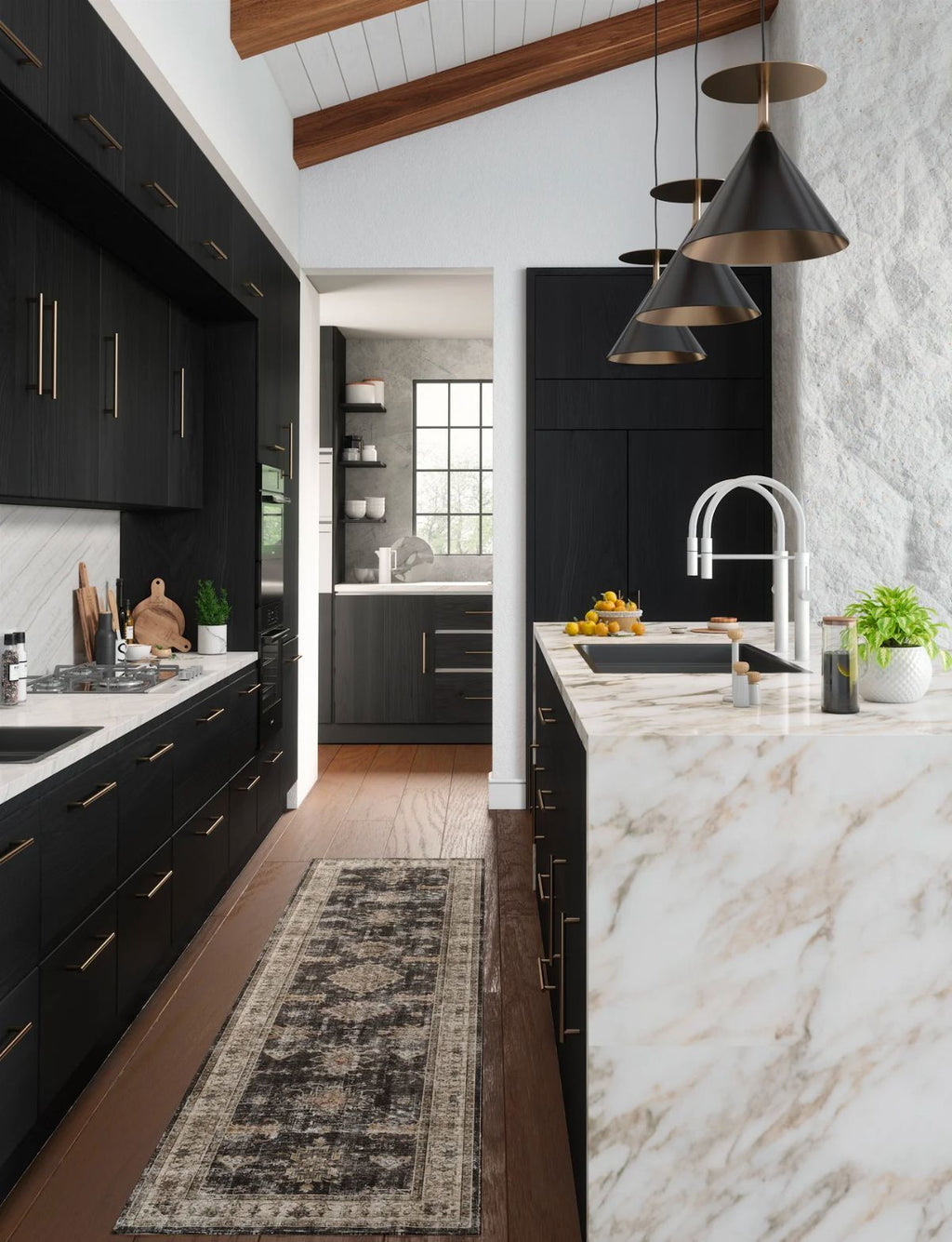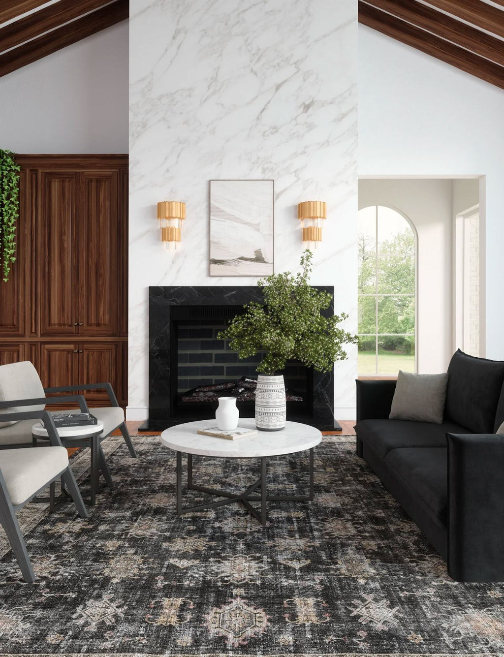 Persian-inspired design in black, charcoal, and beige