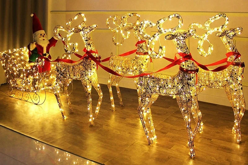 - 1 x Christmas Gold Reindeer Sleigh LED Light Iron Sleigh Cart