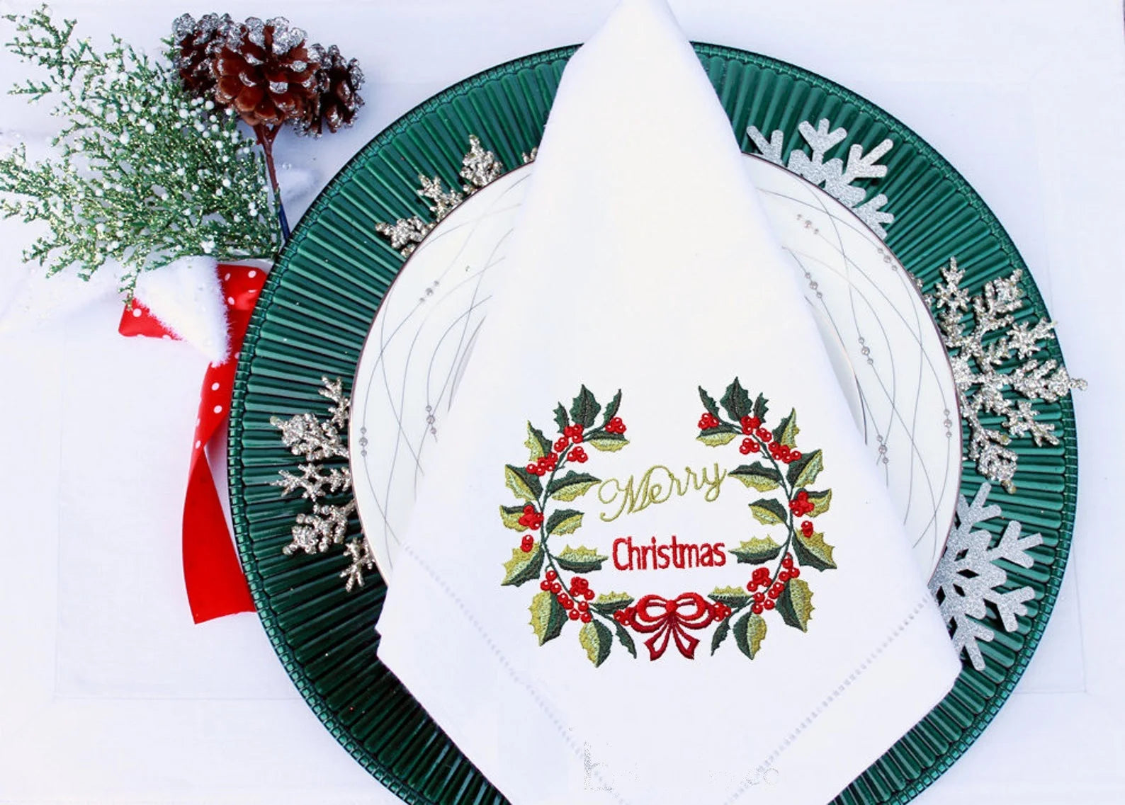 Elevate your holiday dining experience with our Christmas Monogram Embroidery Napkin and Placemat Set. Crafted from a luxurious blend of cotton and linen, this elegant table decoration features a classic hemstitch design adorned with beautiful embroidery of holly berries and personalized monograms or "Merry Christmas." Perfect for family gatherings, holiday dinners, or festive celebrations, this set adds a touch of sophistication and personalization to your table setting. Designed for both style and practicality, these napkins and placemats are easy to clean and sure to impress your guests.