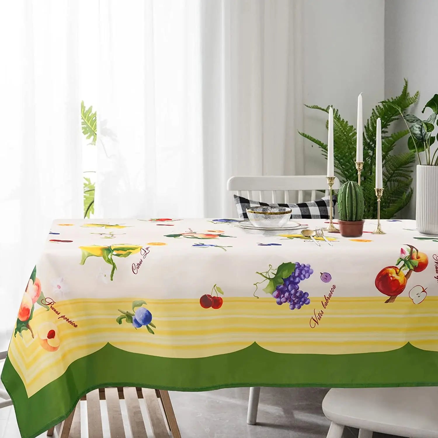 Easy Care: The tablecloth is machine washable, ensuring hassle-free cleaning and maintenance. Its wrinkle-resistant fabric ensures a neat and polished look every time.