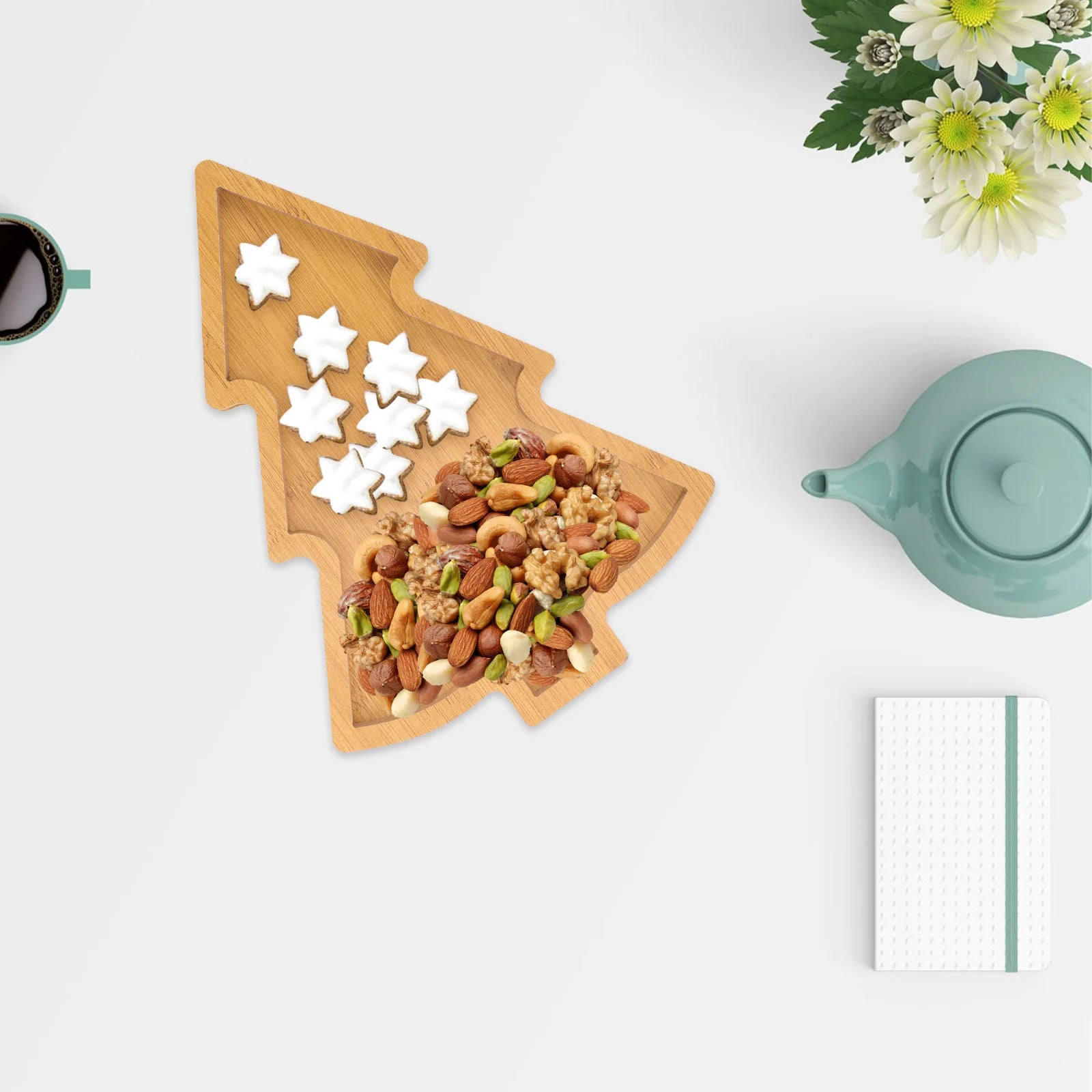 Christmas Serving Dish Beautiful Tray Tree Dessert Plates Light Bulb Wooden Food Man Japanese Candy