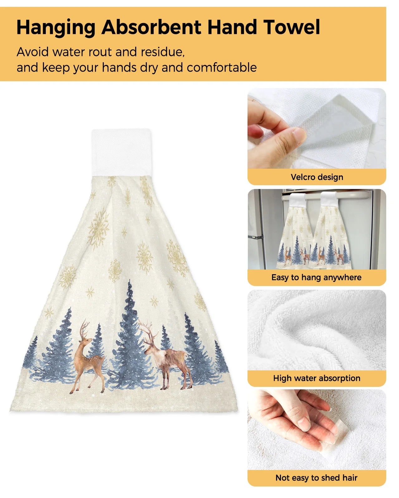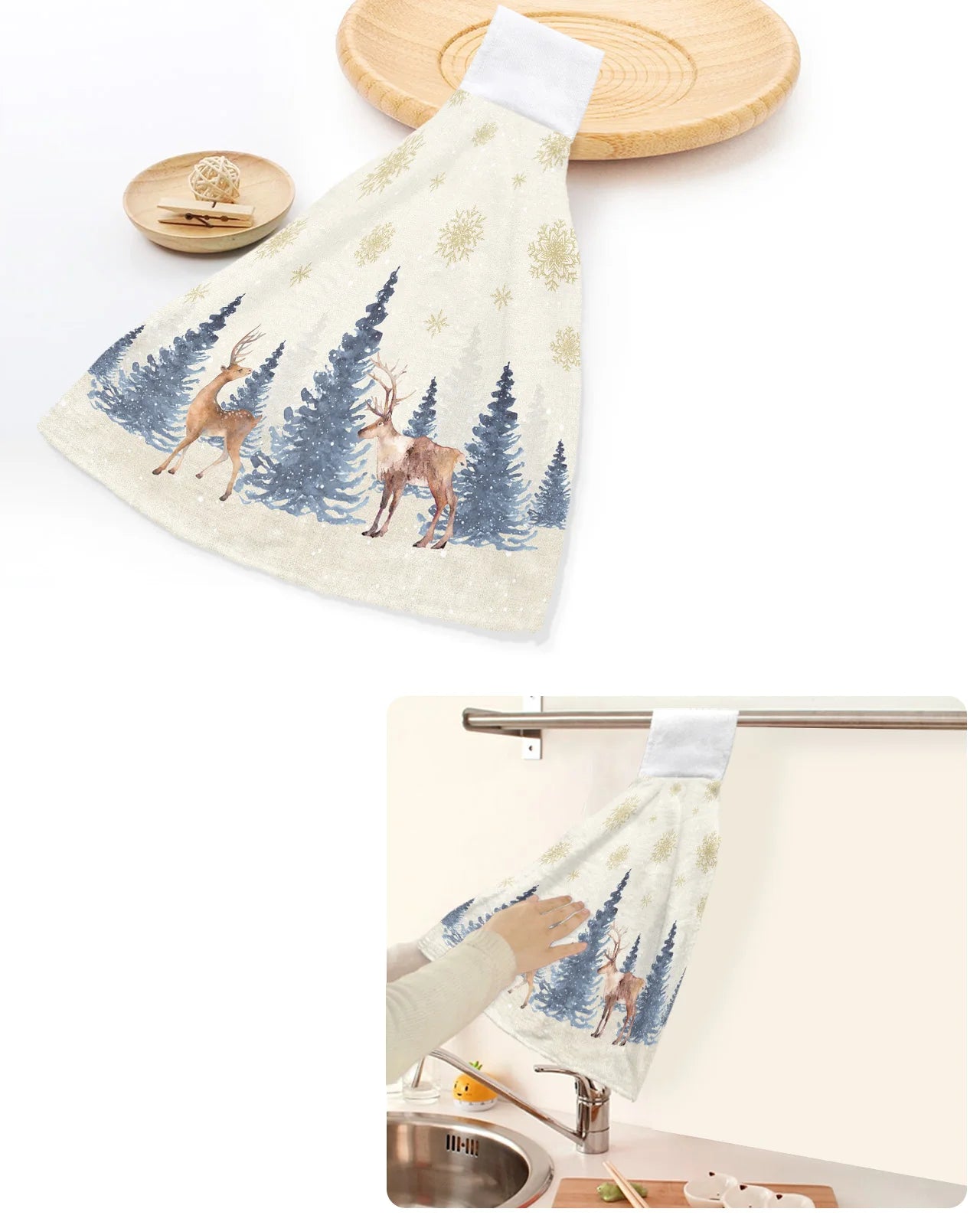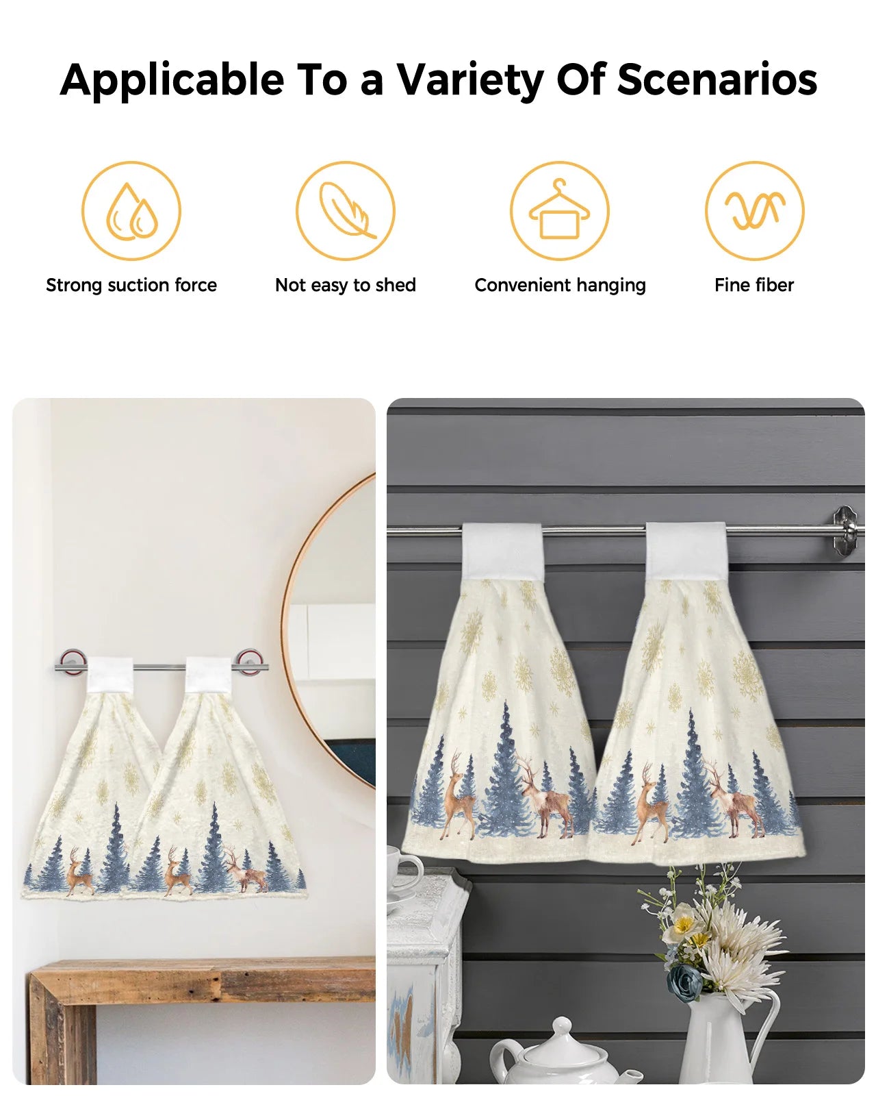 • Festive Christmas Design: Adorned with charming snowflake and elk patterns, these towels add a festive touch to your kitchen or bathroom décor.