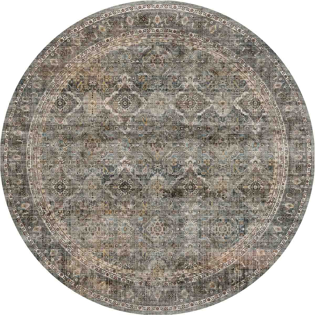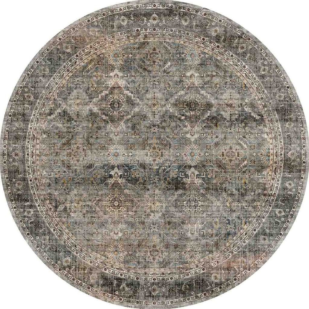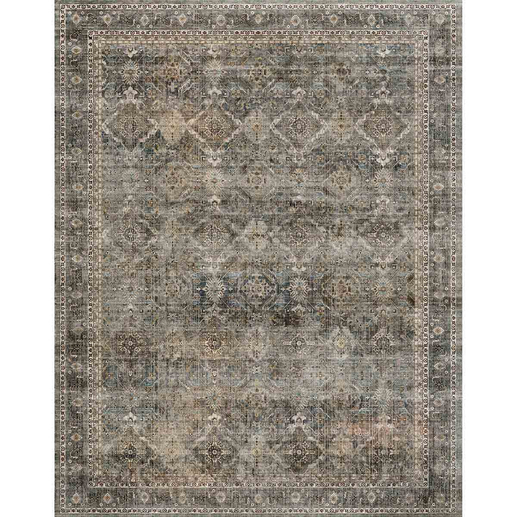 Persian-inspired design with rich grey, olive, green, and coral tones