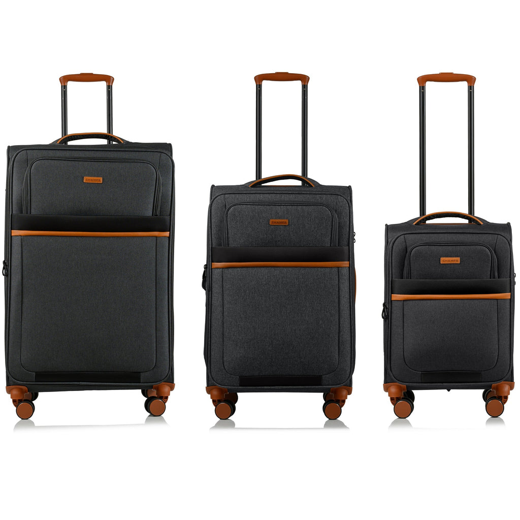 The Classic II Collection by Champs is a 3-piece soft-sided luggage set designed for modern travelers. Crafted from ultra-lightweight 1200D Nylon, each piece combines durability with style. Featuring recessed TSA-approved locks and expandable compartments, this collection provides secure, organized storage for all your travel essentials. From the convenient carry-on to the spacious large check-in bag, the Classic II Collection offers comfort, flexibility, and premium functionality for every journey.