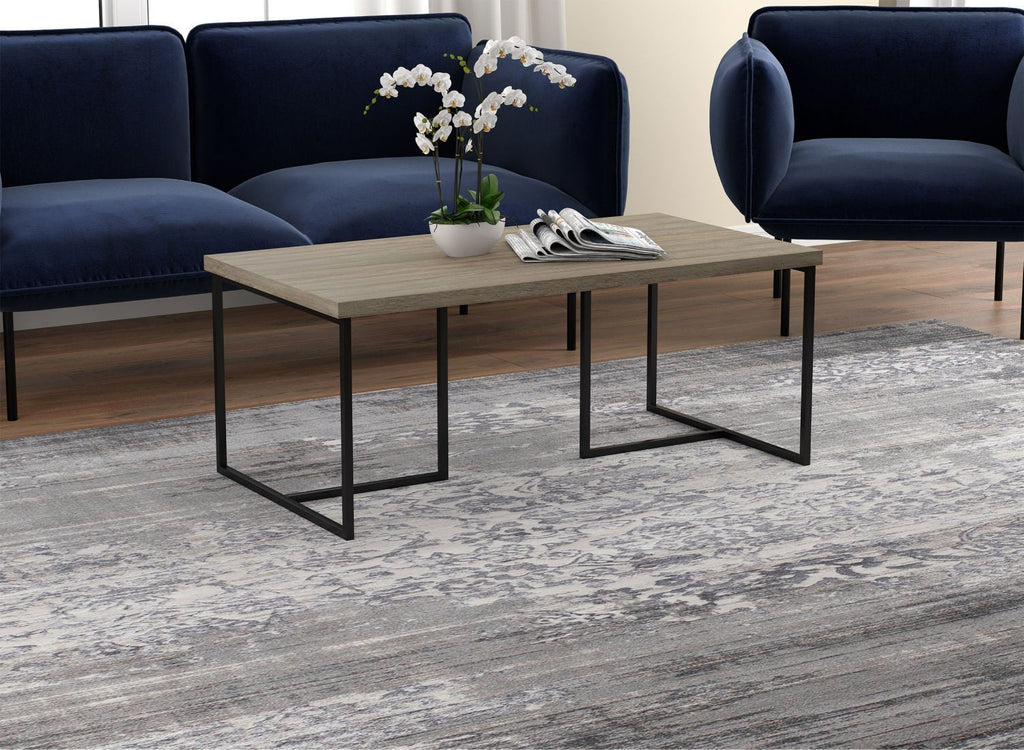 Upgrade your living space with this modern Coffee Table featuring a dark taupe wood top and black metal frame. Its durable construction and spacious surface provide both style and functionality. Perfect for use as a coffee table, center table, or cocktail table, it seamlessly complements contemporary décor. Easy to assemble and built to last, it’s a practical and elegant addition to any living area.