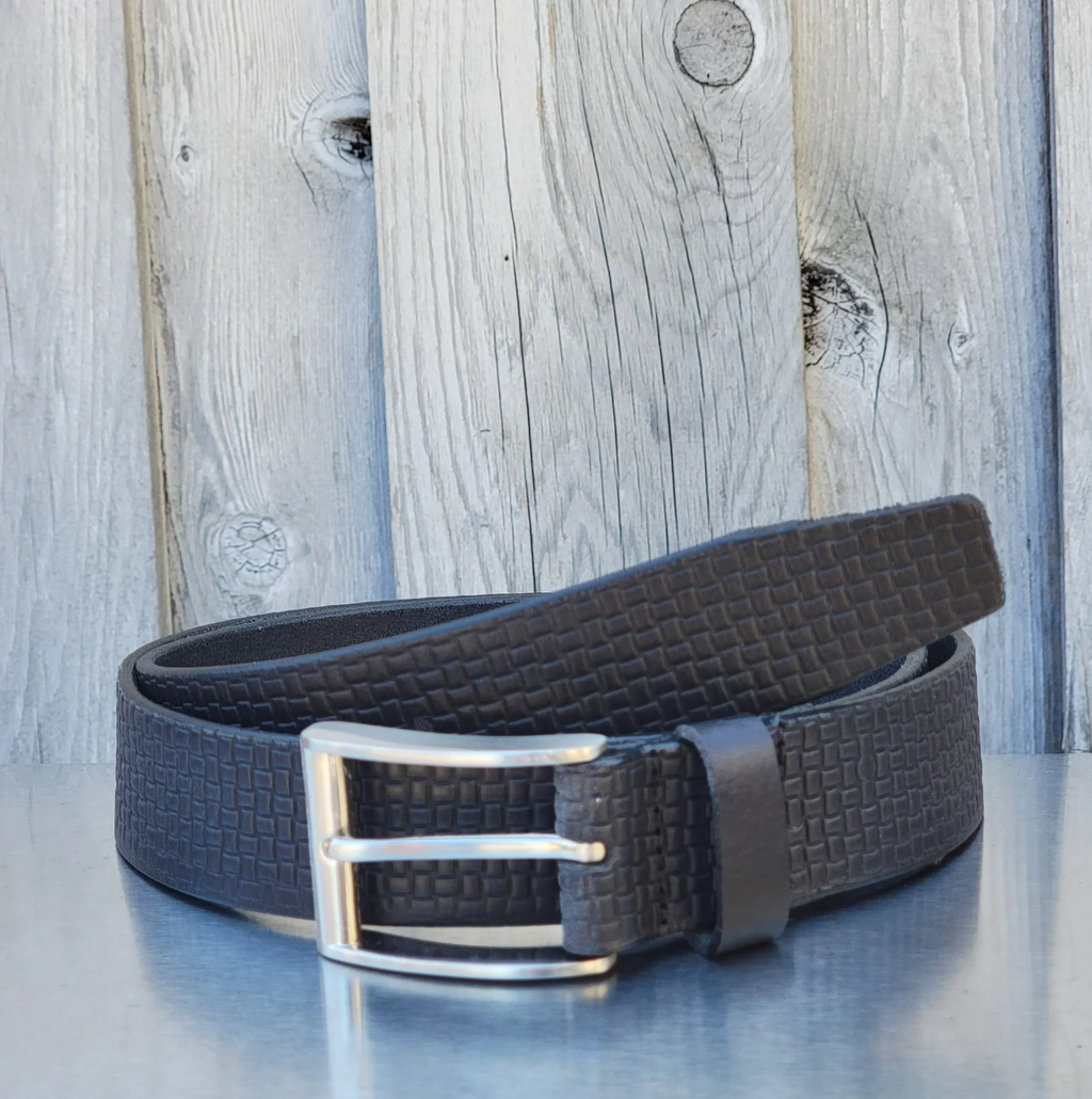 Unlike department store belts that rely on bonded or so-called “genuine” leather, the Cognac Formal Textured 100% Real Leather Belt is made from premium, ethically sourced leather that resists cracking, stretching, and breaking. Every strap is precision cut from the hide, ensuring strength, durability, and a finish that improves with age. The 1.4” (35 mm) width is the ideal size for dress trousers, offering both comfort and a polished appearance.